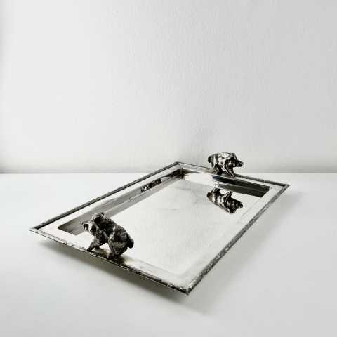 verkauftTablett mit Wildschweinen, versilbert -