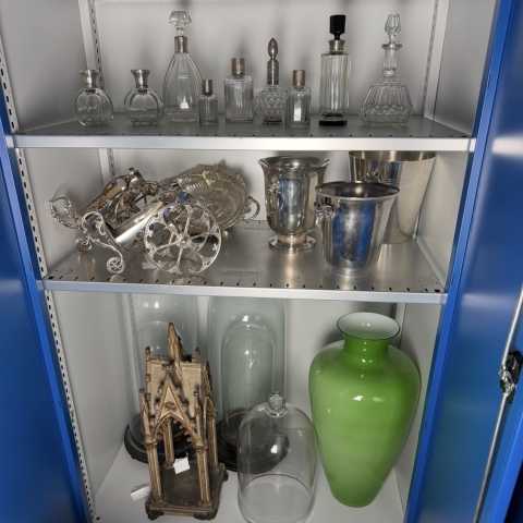 Rechteckiger Kühler mit Tablett für mehrere Flaschen, versilbert