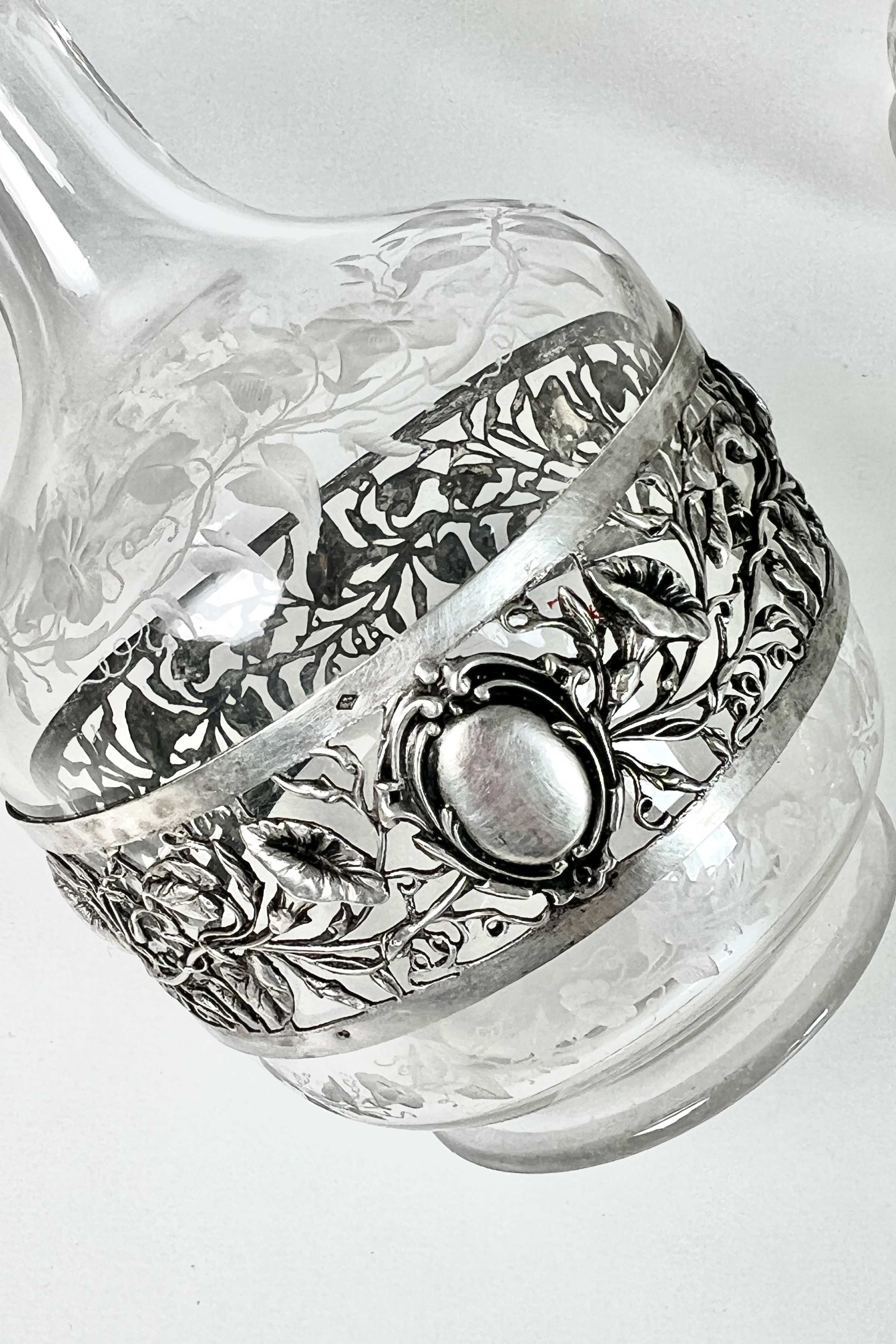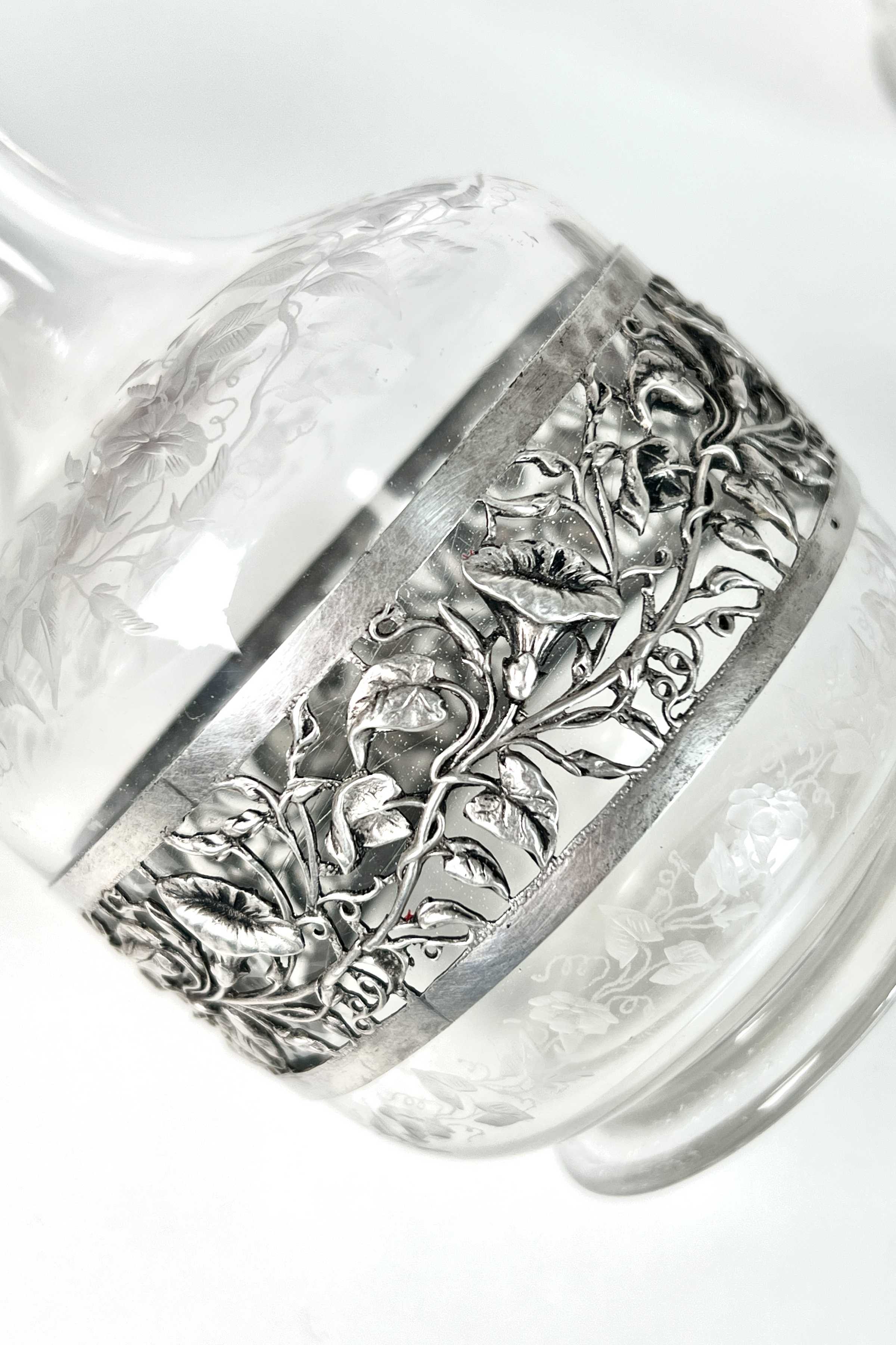 - Kristallglas mit detailreicher, floraler Gravur, 800er Silber-Ummantelung