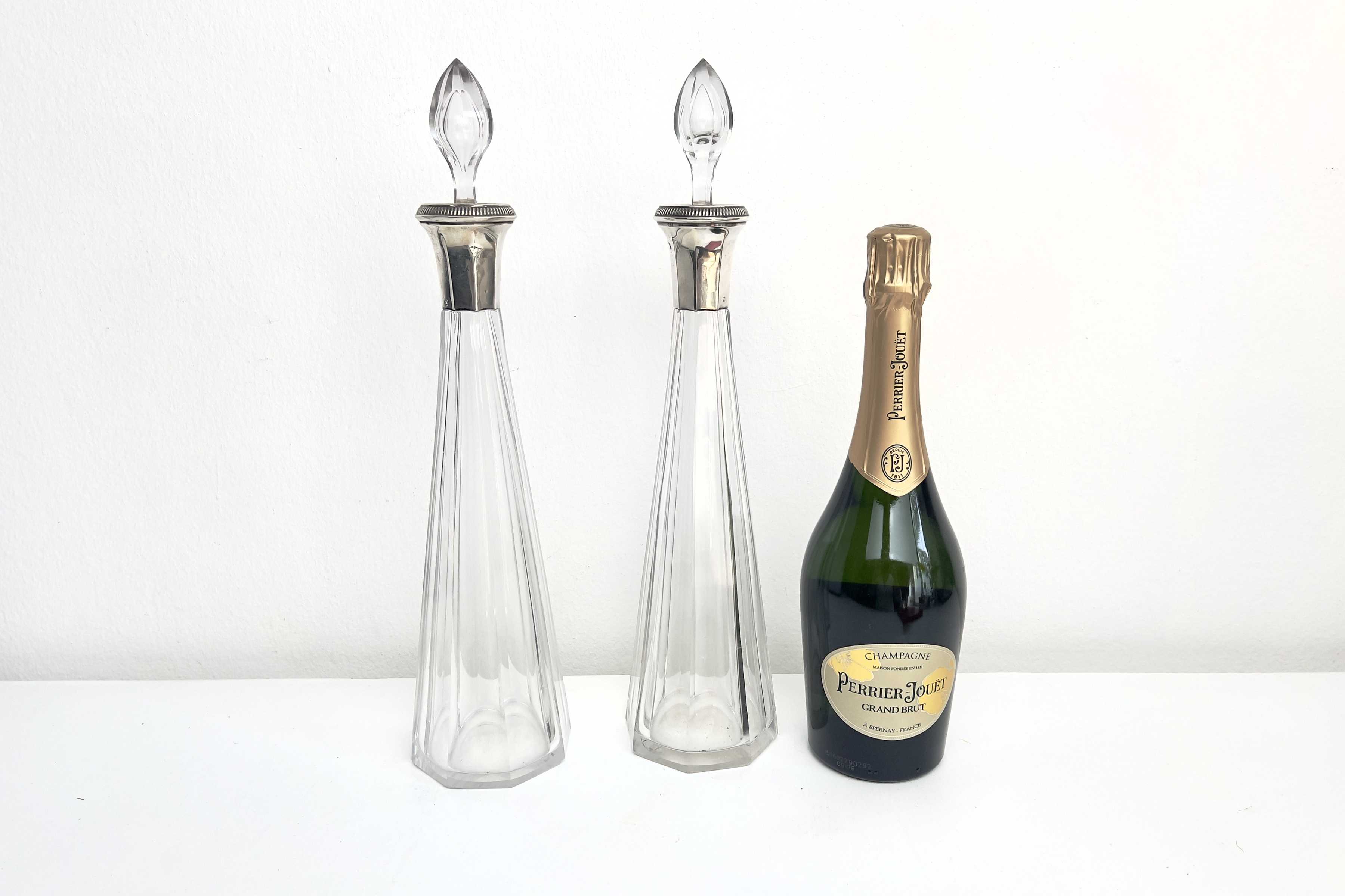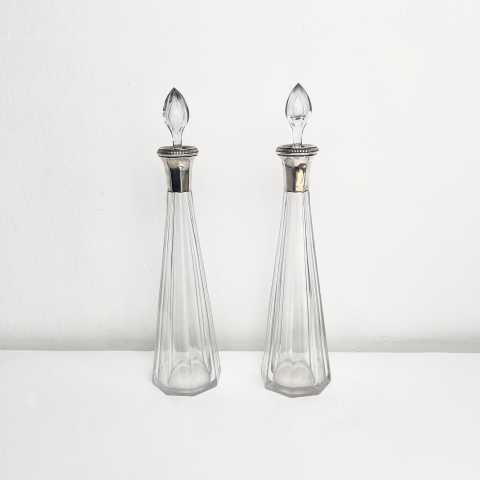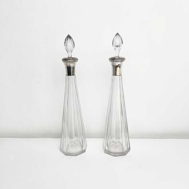 Art Deco Baccarat Karaffenpaar mit Silbermontur
