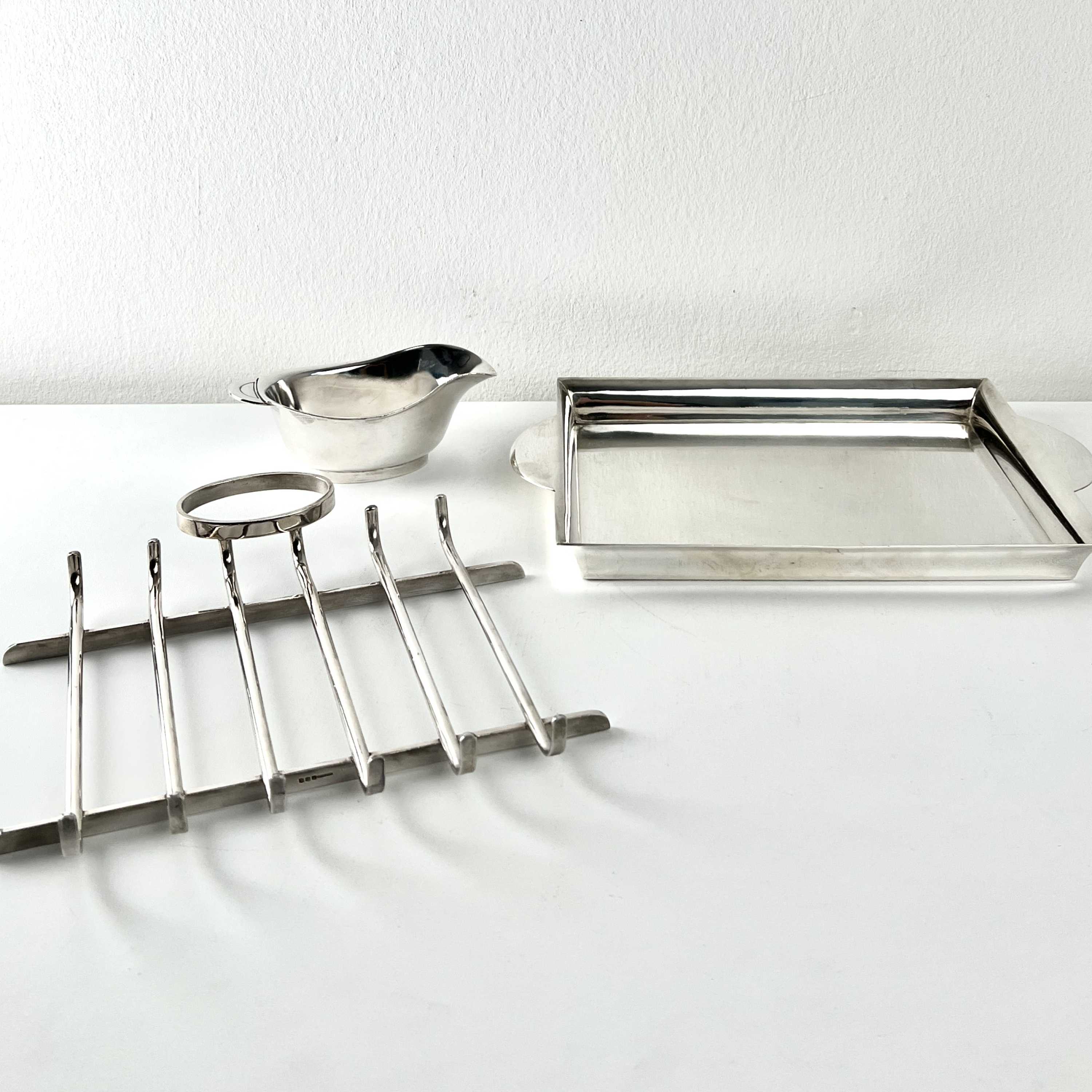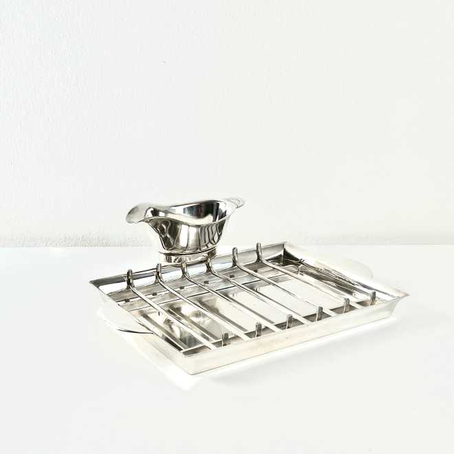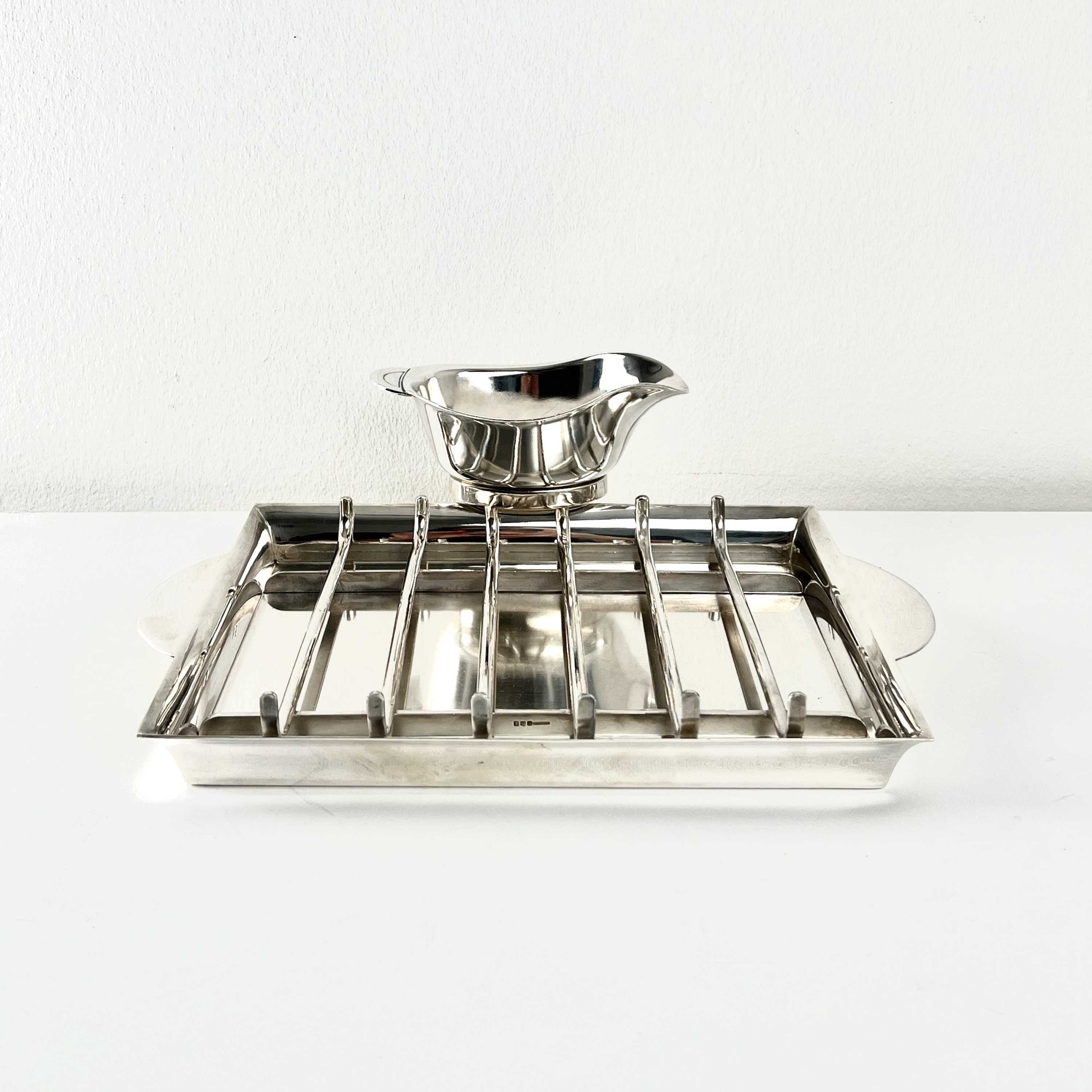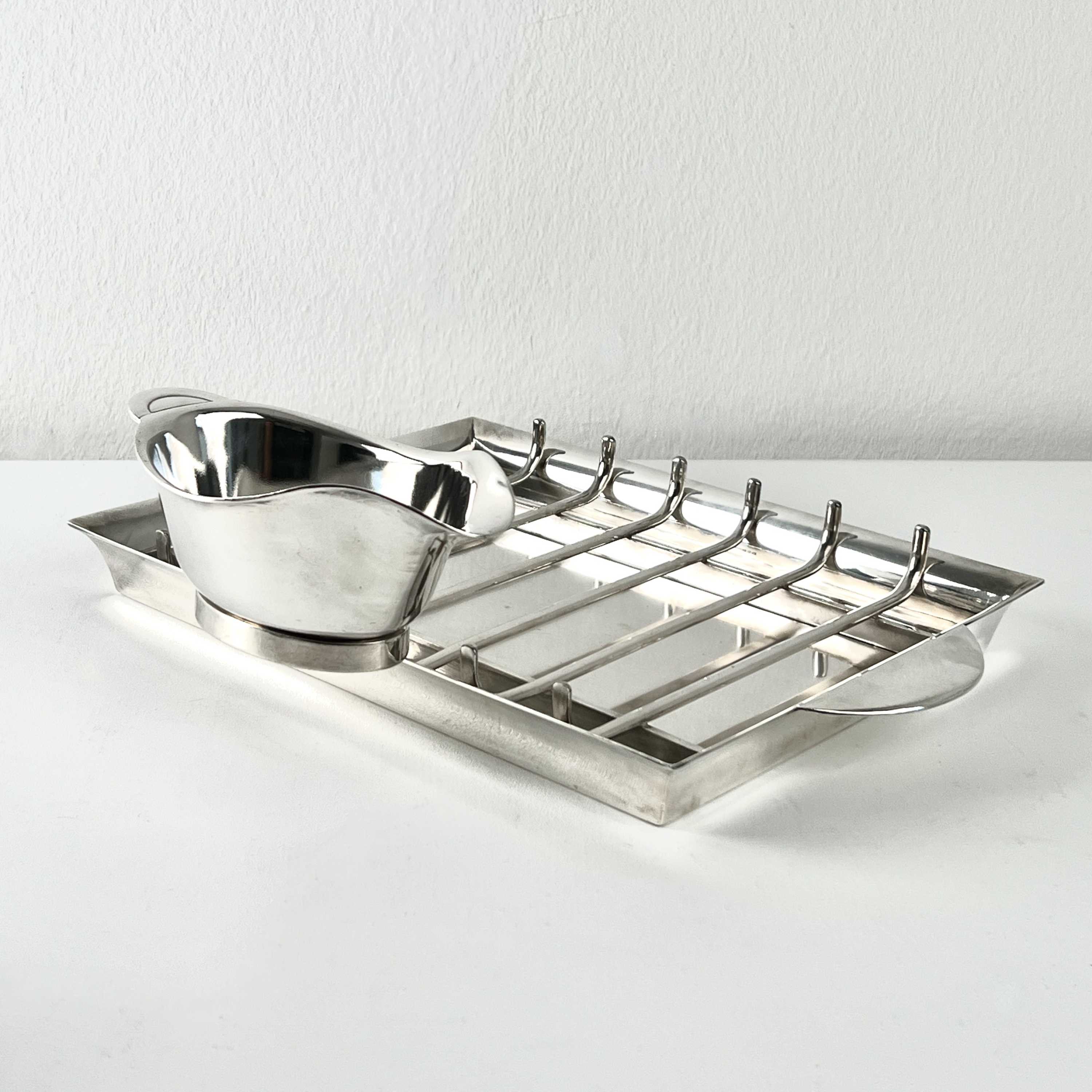 mit Sauce Hollandaise Gießer und Spargelzange Christofle, Design Luc Lanel