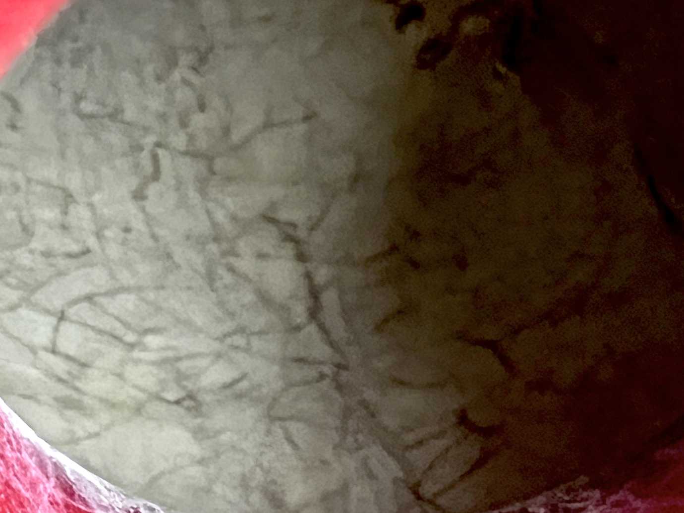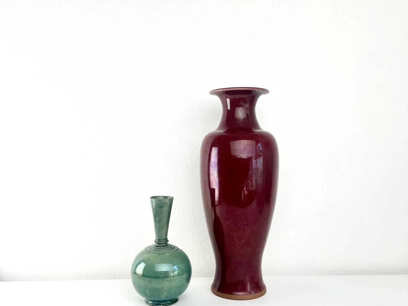 - Porzellan, mit Innen grünem Craquele Celadon, außen Ochsenblutglasur mit leichter Craquele-Struktur