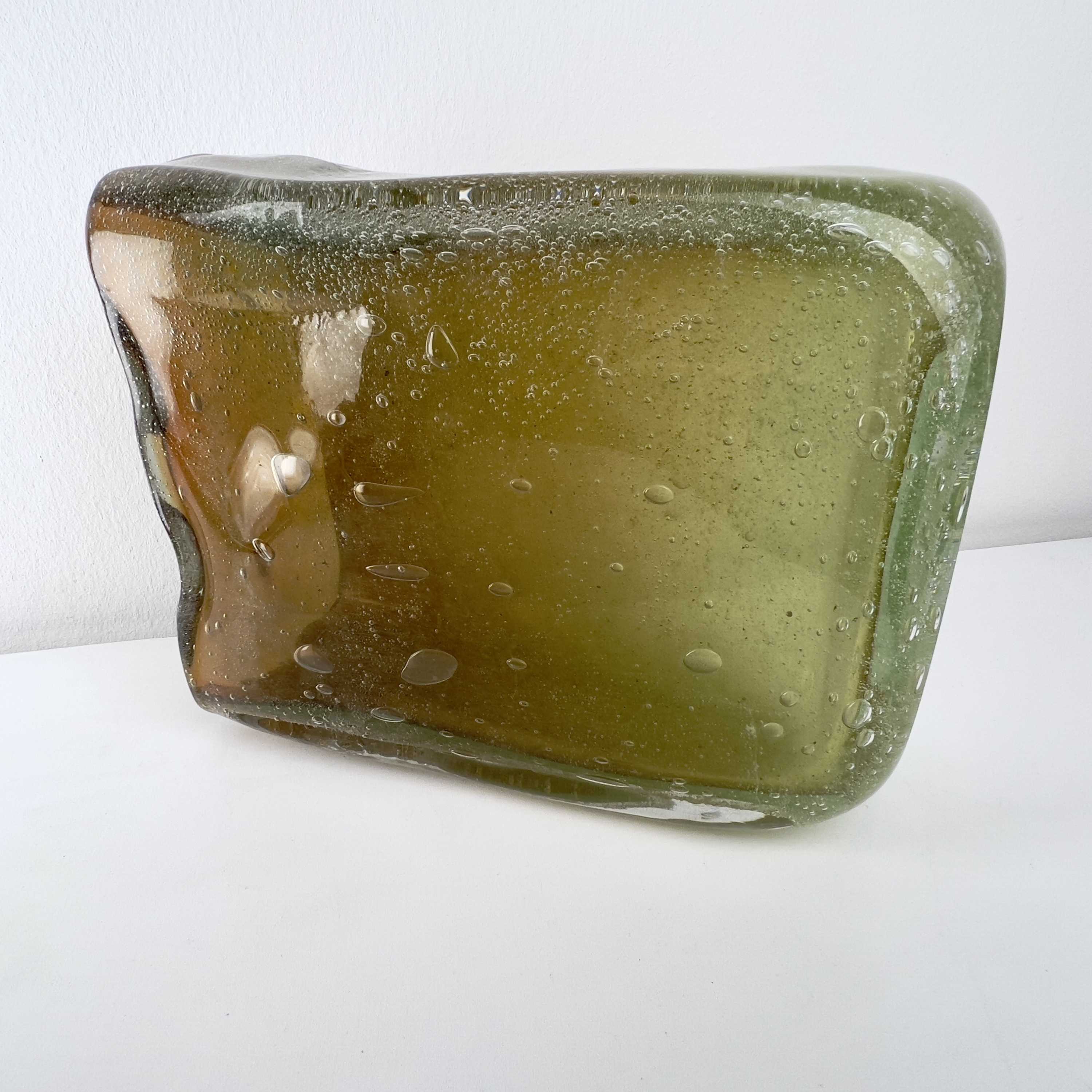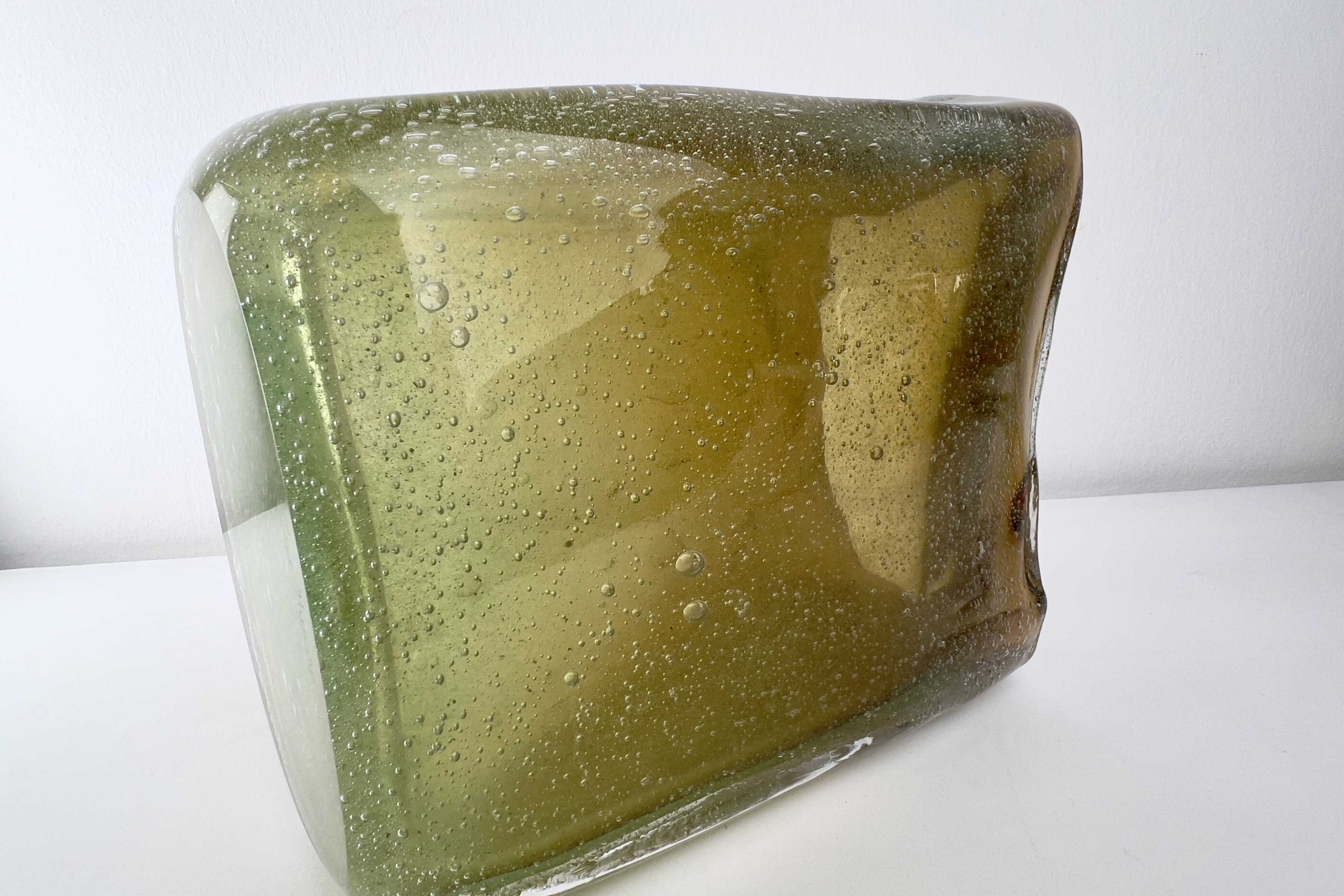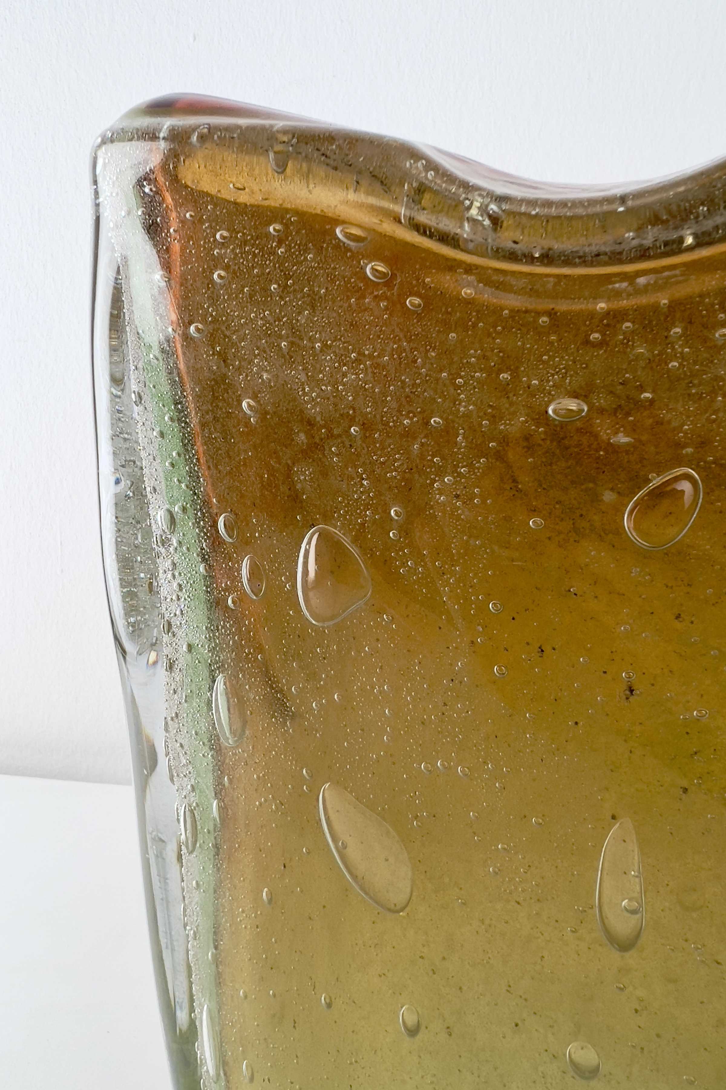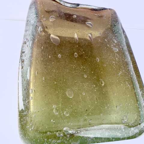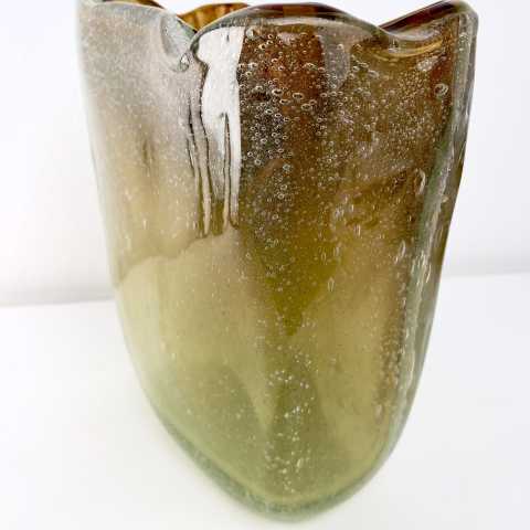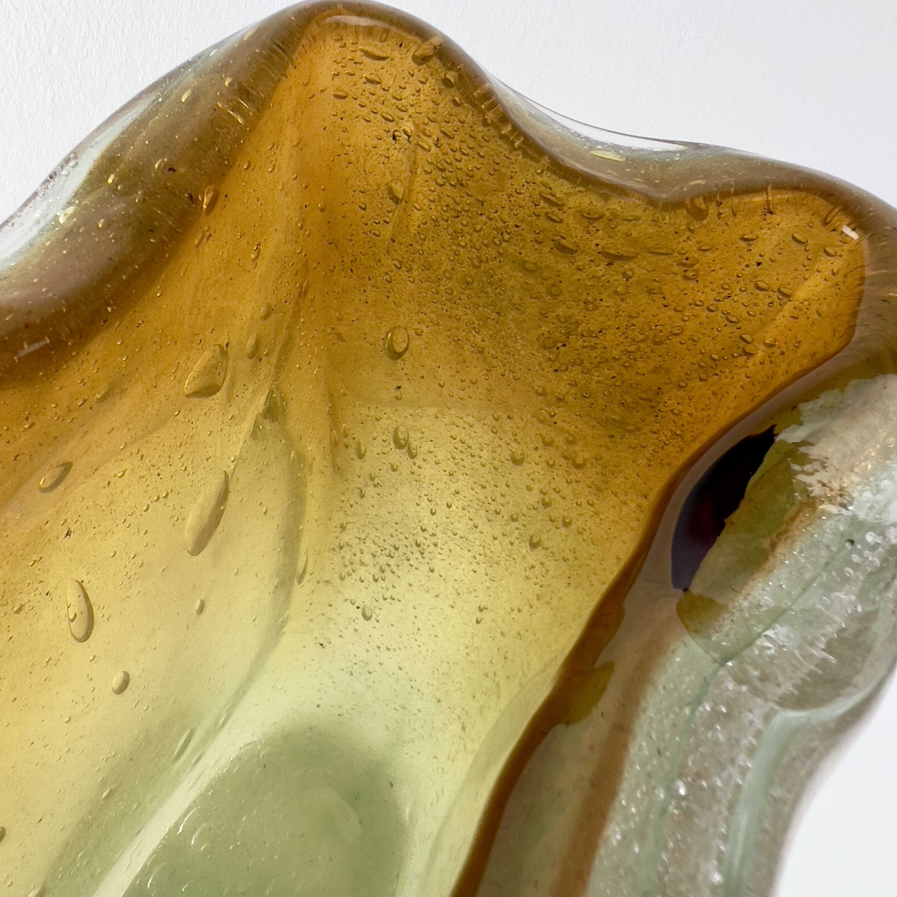 - Muranoglas, Überfangglas mit Lufteinschmelzungen in verschiedenen Größen, herrlicher Farbverlauf von grün/gelb bis dunkelorange