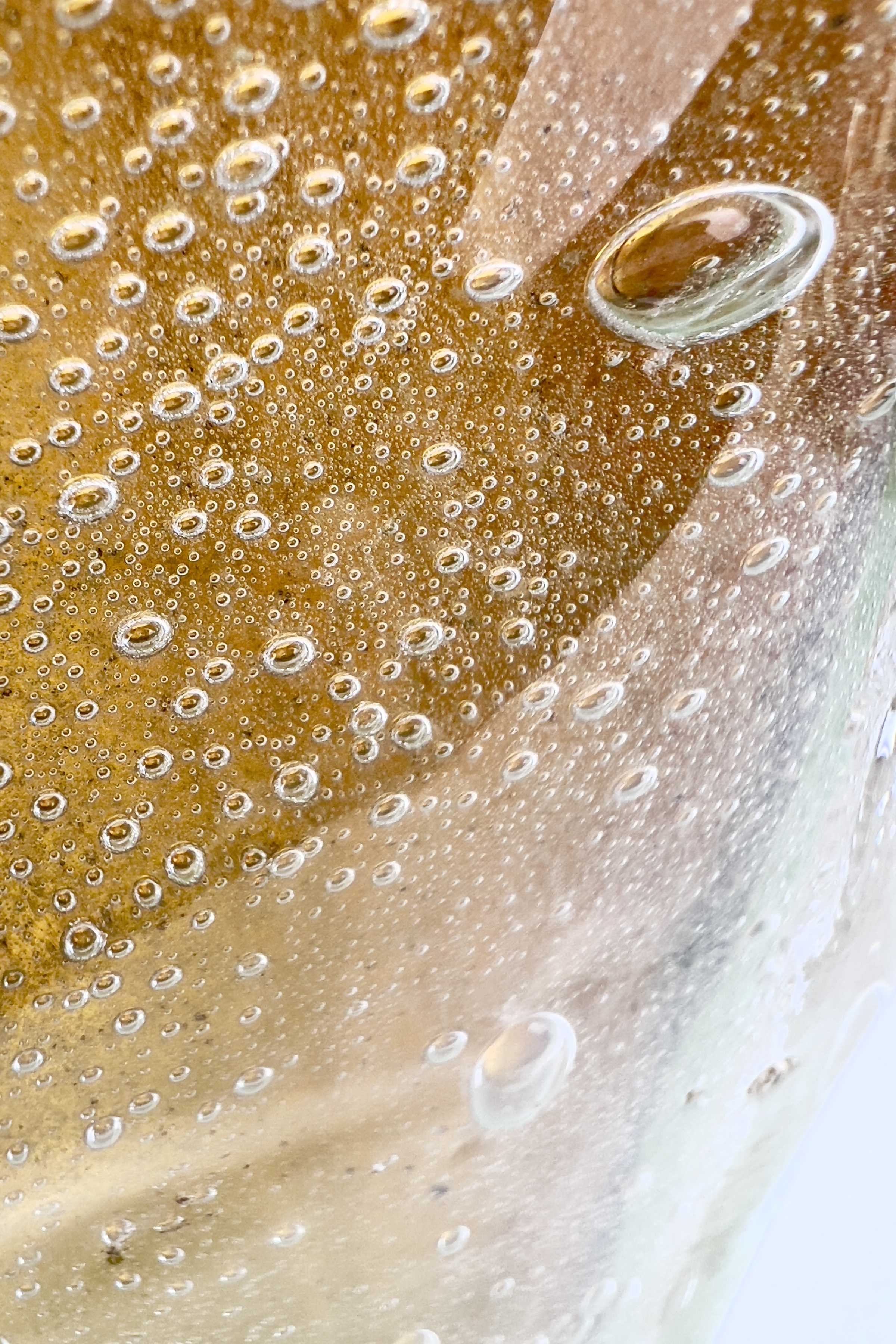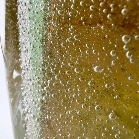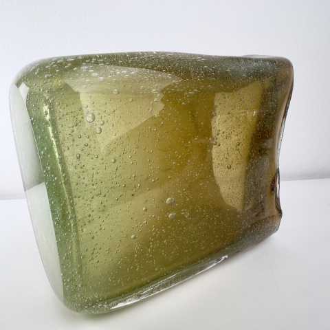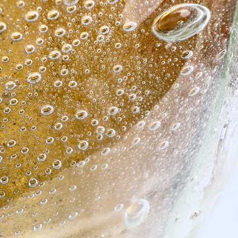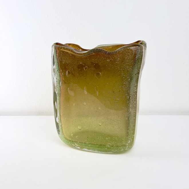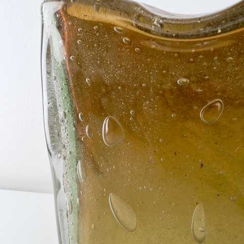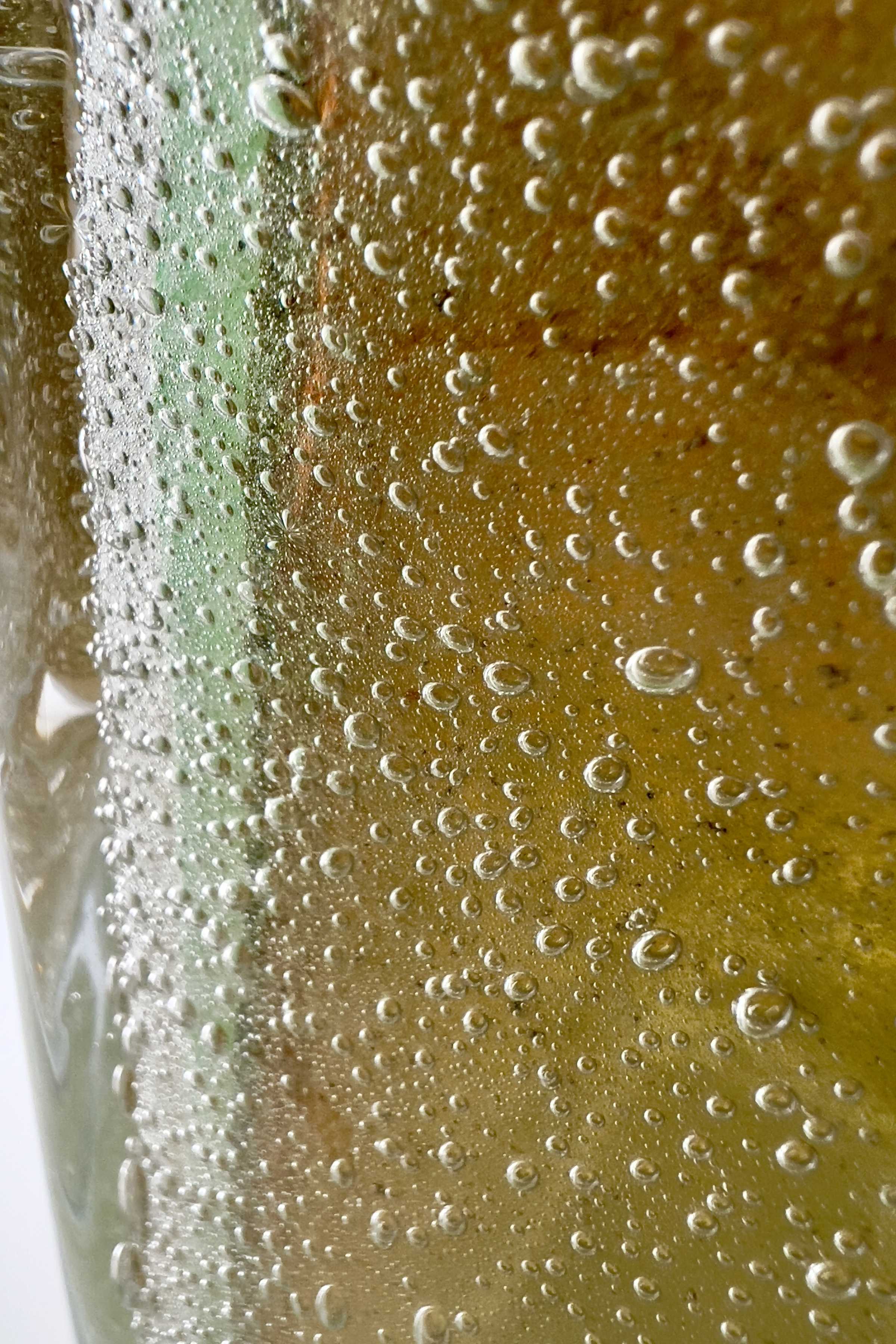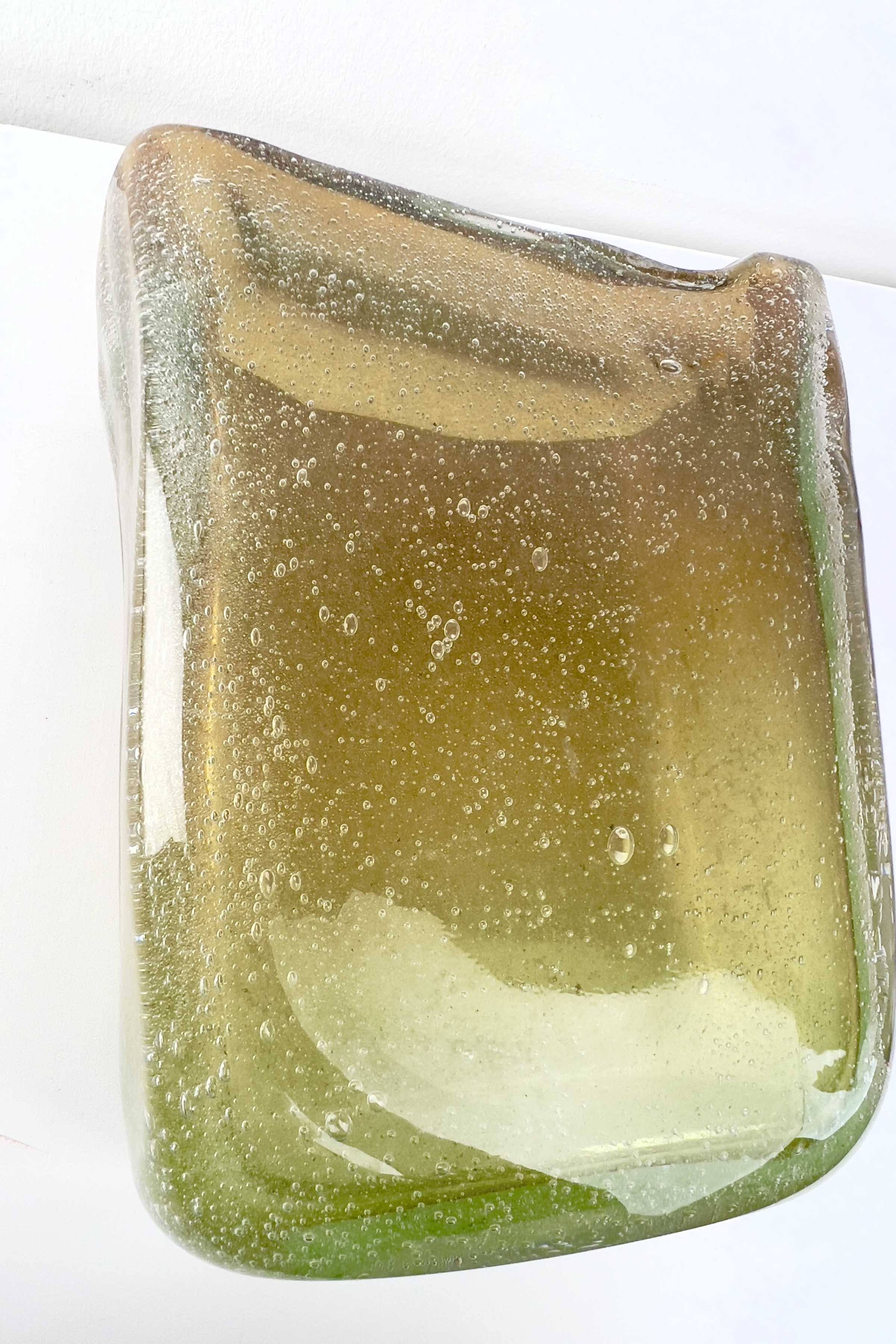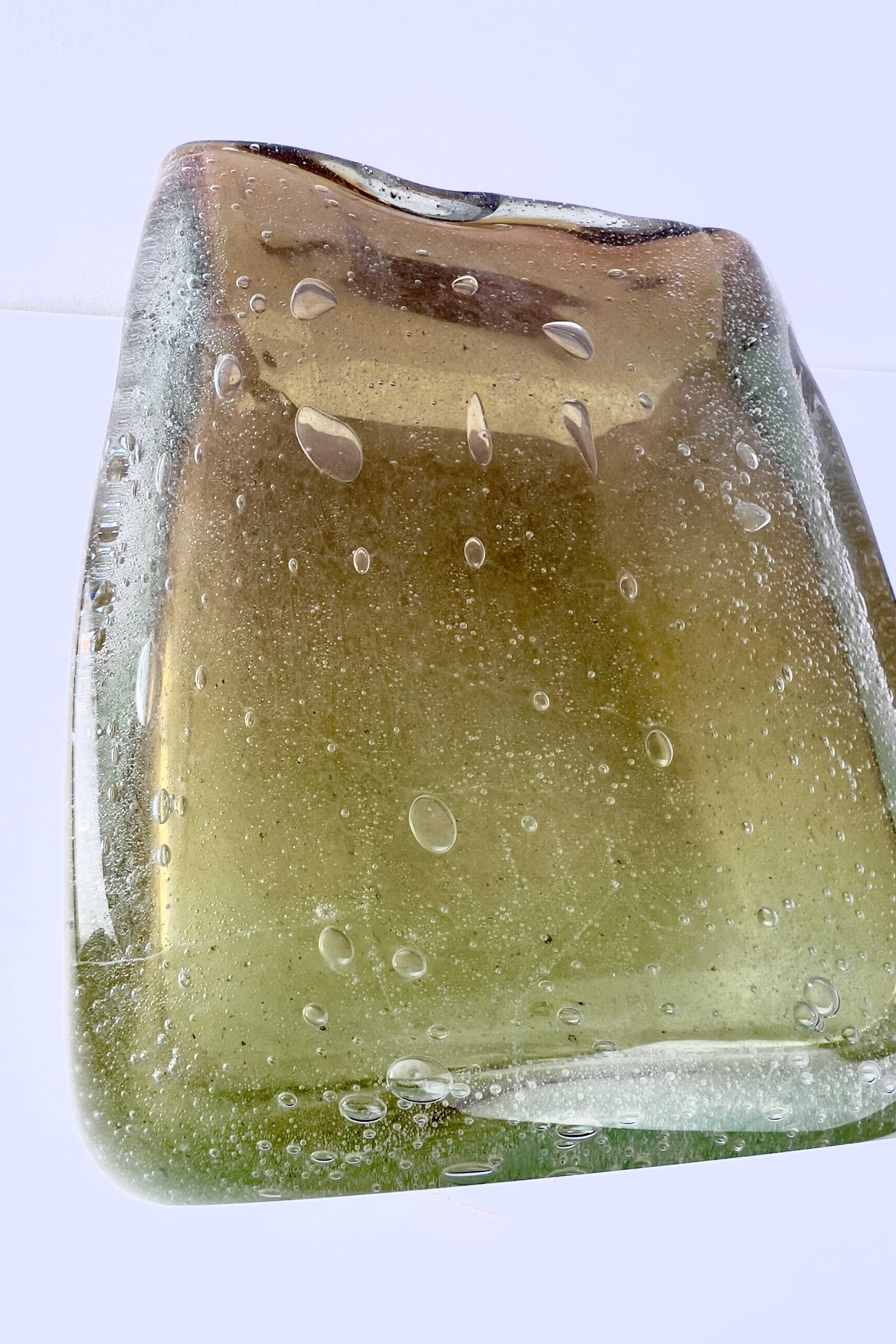 - Muranoglas, Überfangglas mit Lufteinschmelzungen in verschiedenen Größen, herrlicher Farbverlauf von grün/gelb bis dunkelorange