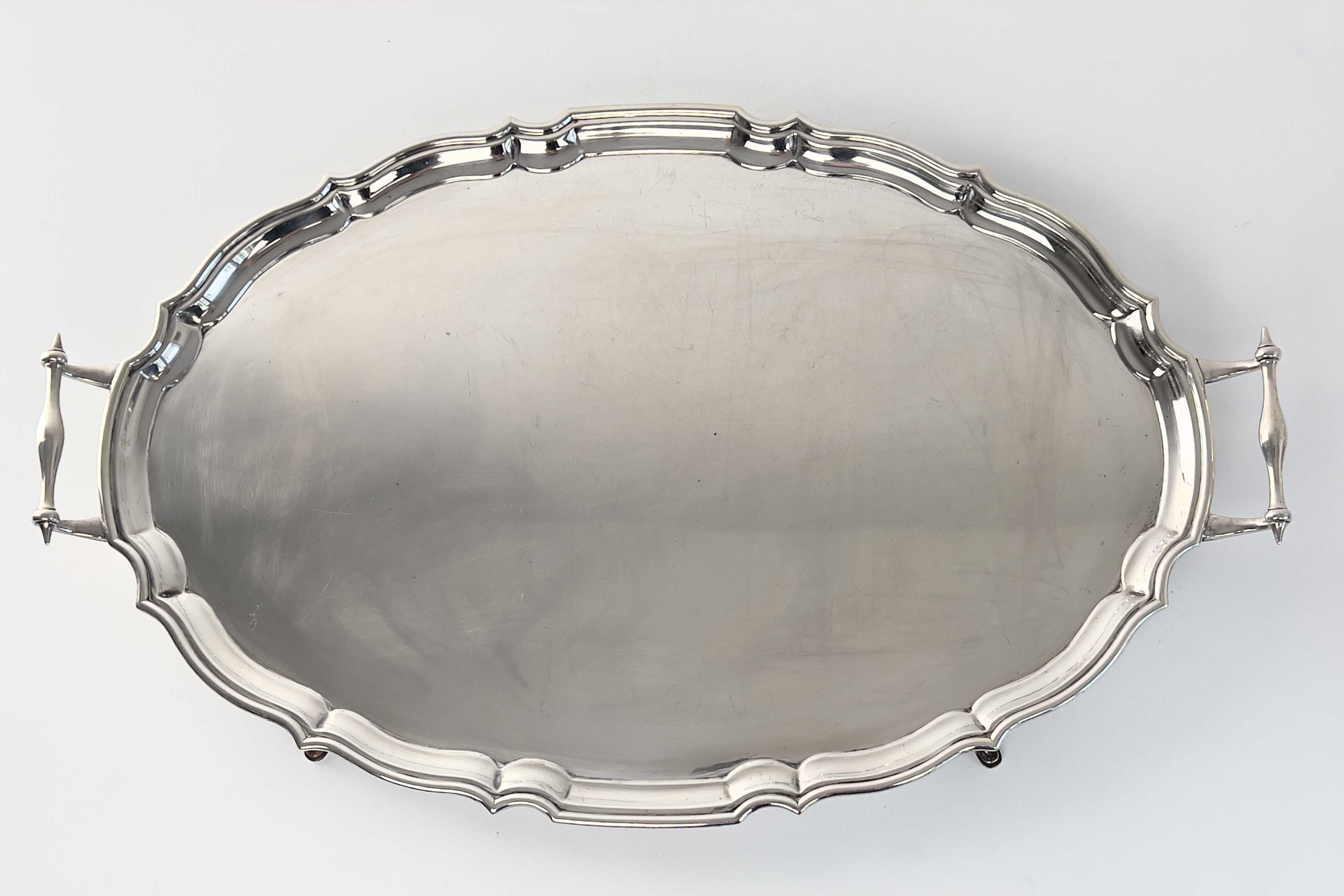 Außergewöhnliches Tablett, oval, versilbert