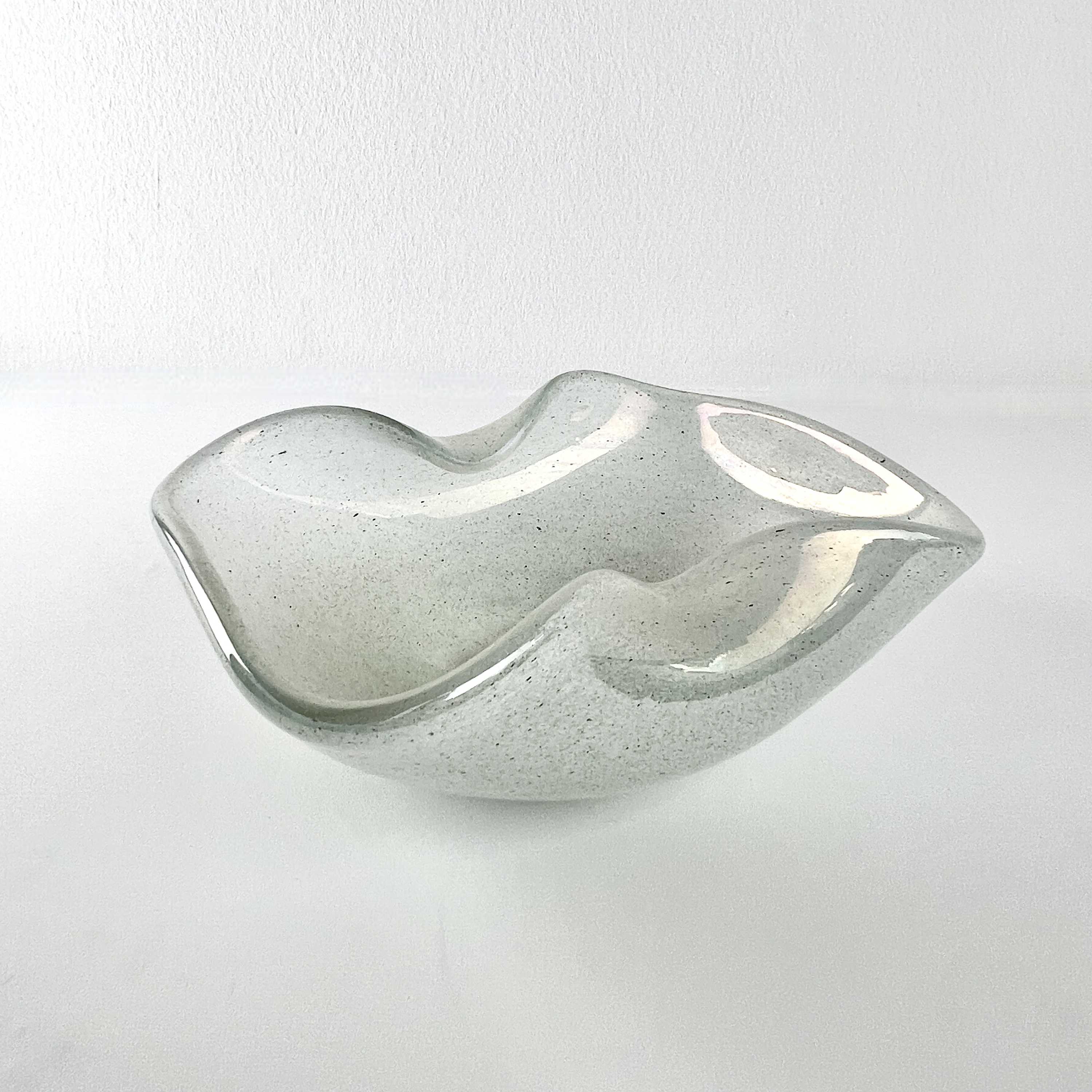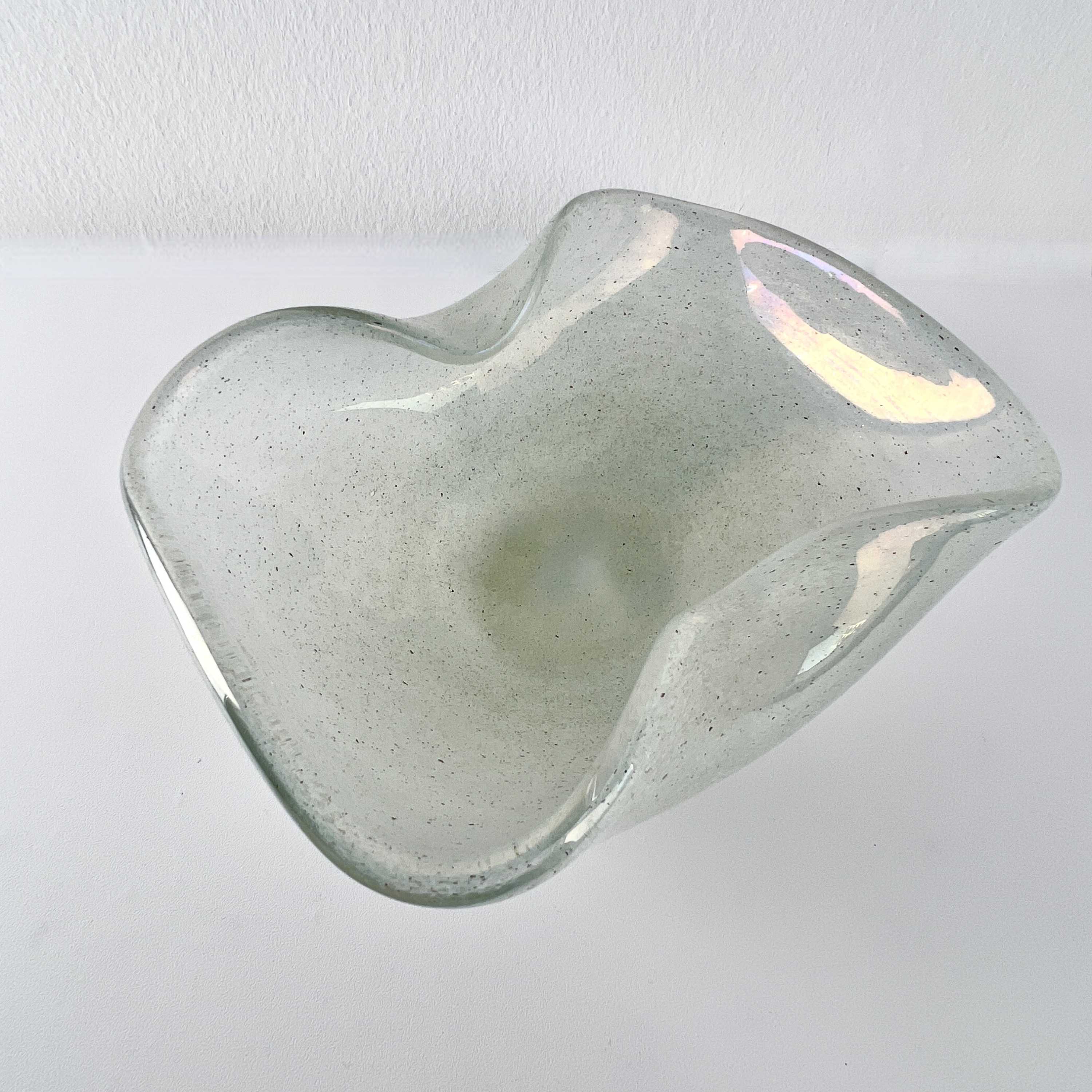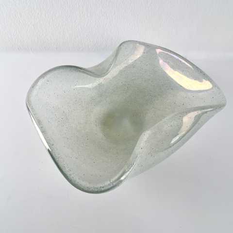geschwungene Schale mit irisierenden Aquamarin-Tönen mit Metalleinschlüssen