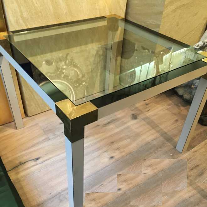 Holz, Furnier, Metall, aufgelegte Glasplatte