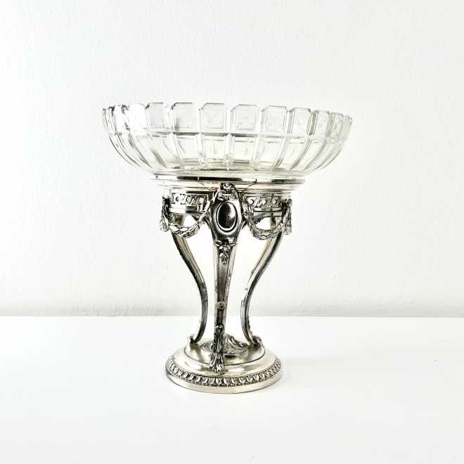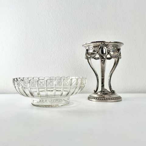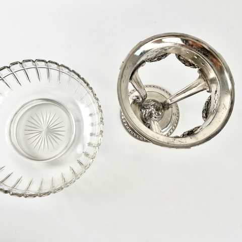 Metall versilbert, mit geschliffenem Kristallschalen-Einsatz
