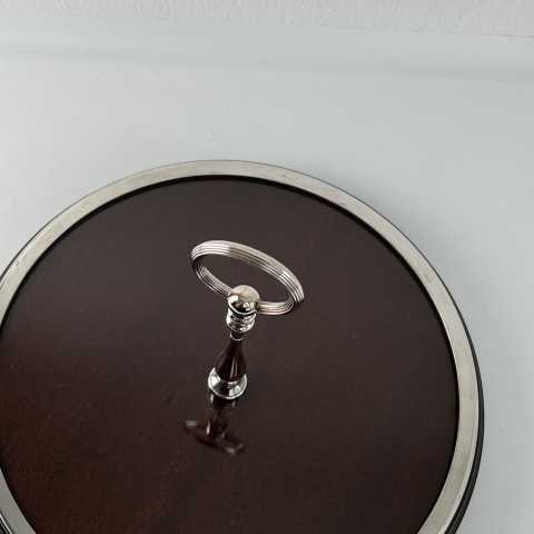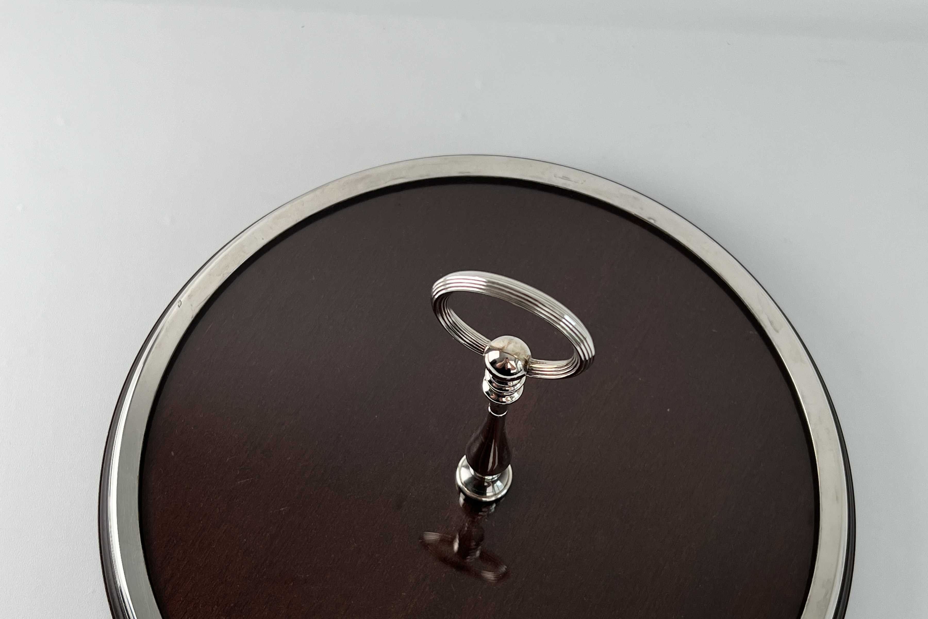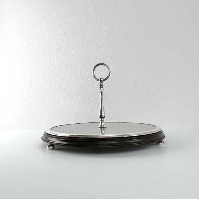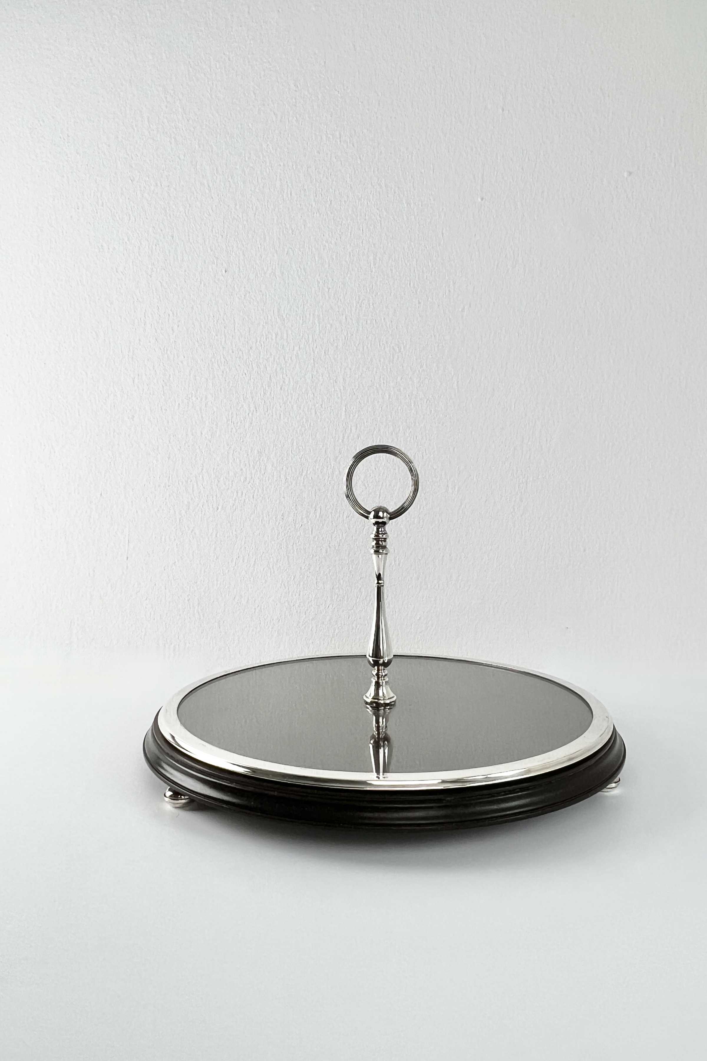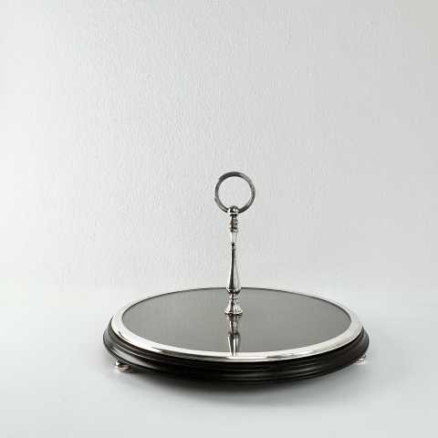 Holzteller mit Glasauflage und versilbertem Griff und Füßen