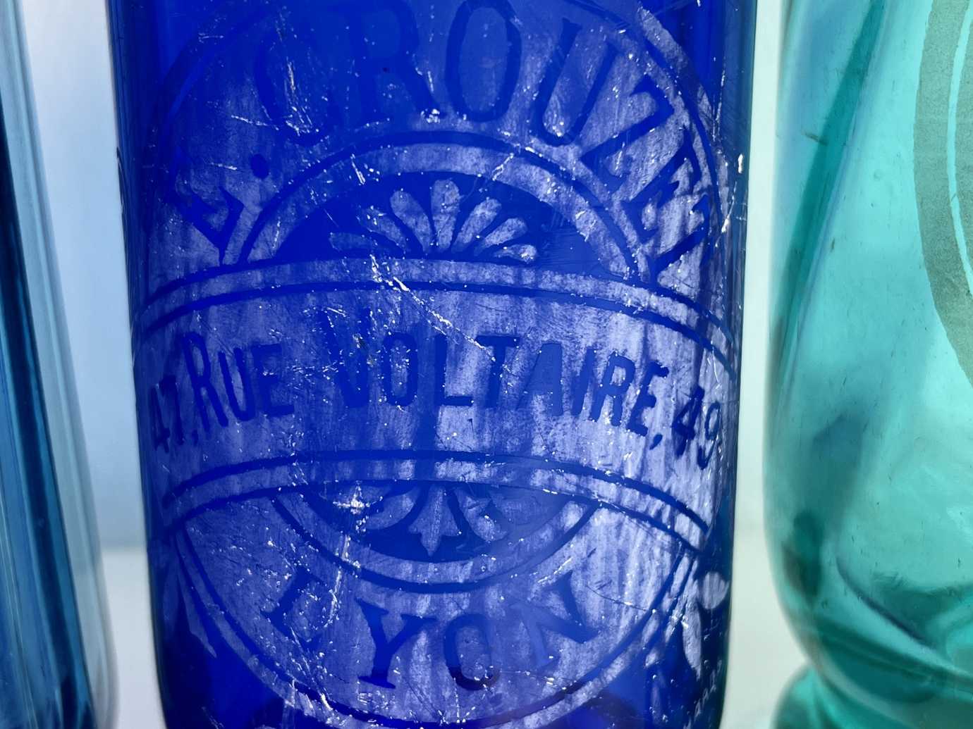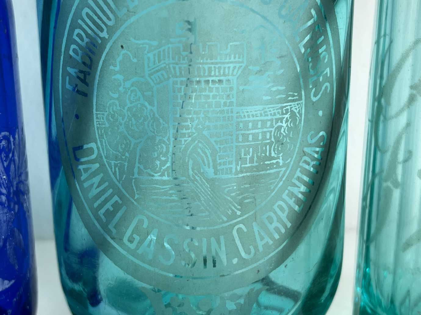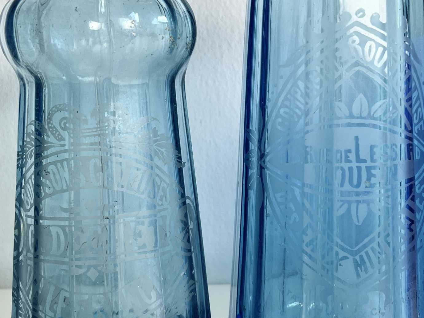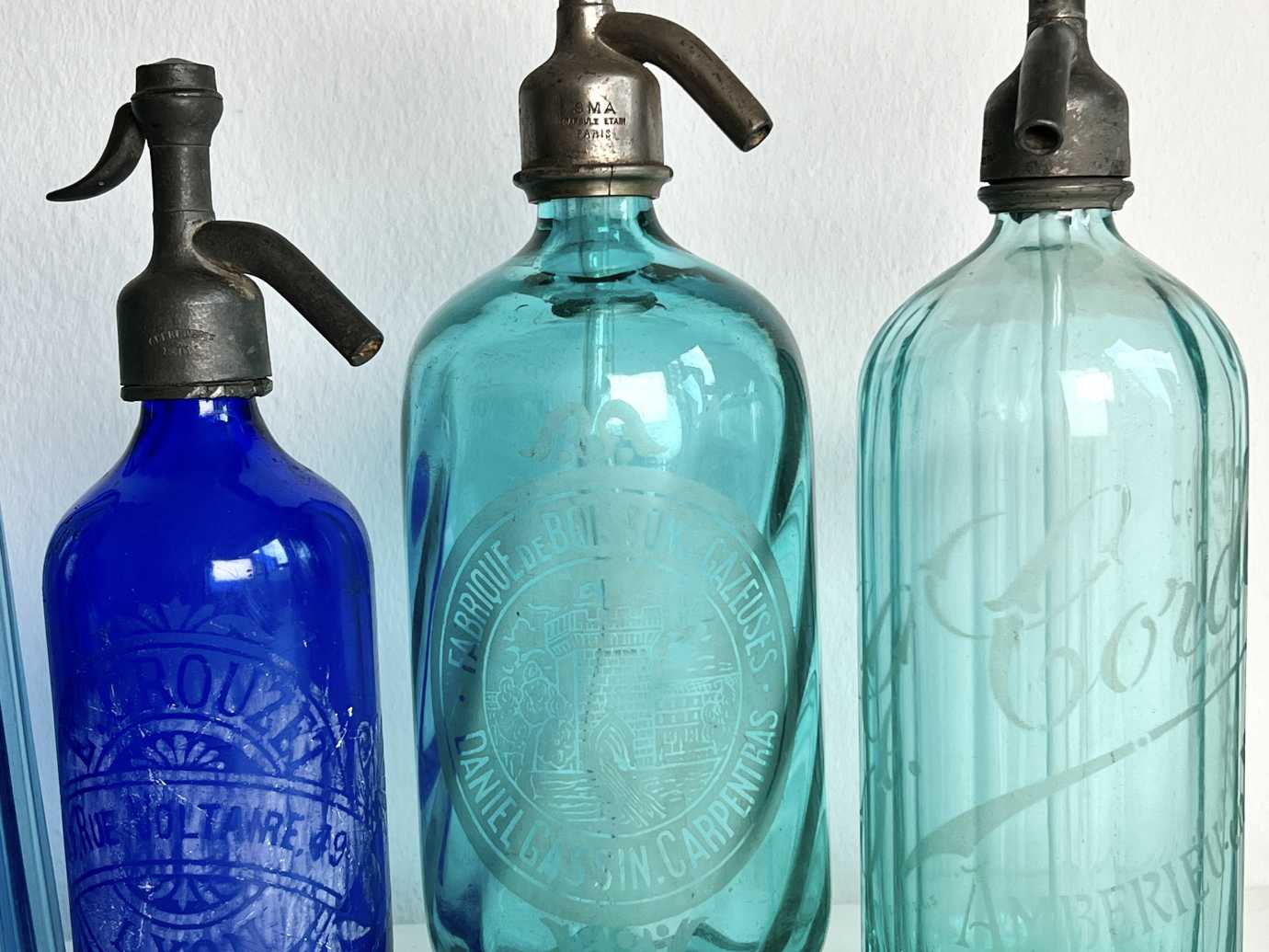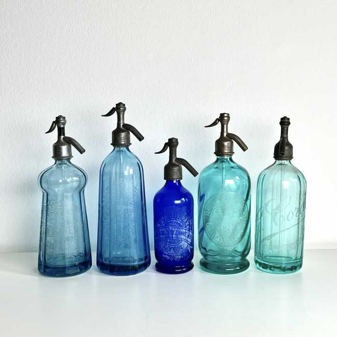 Französische Siphons in Blau-Türkis-Tönen