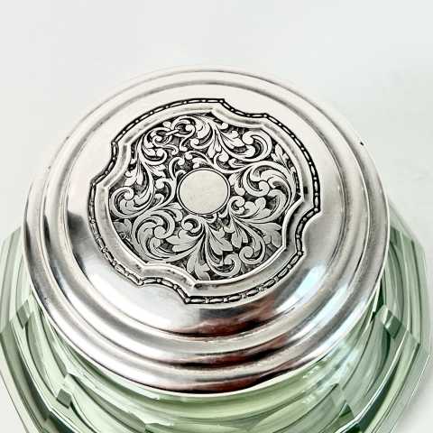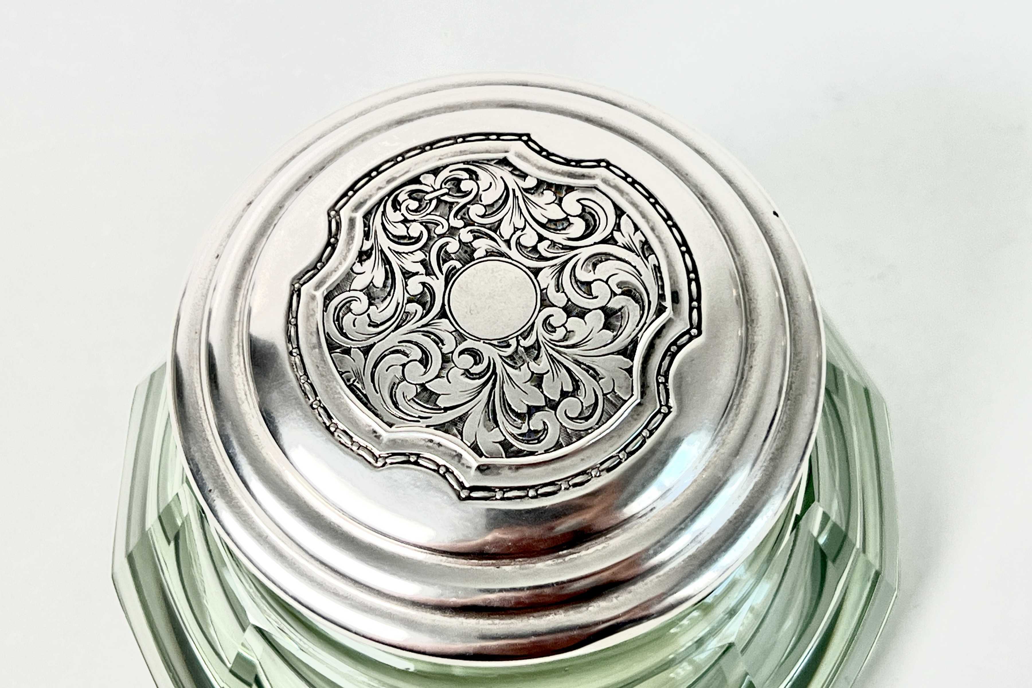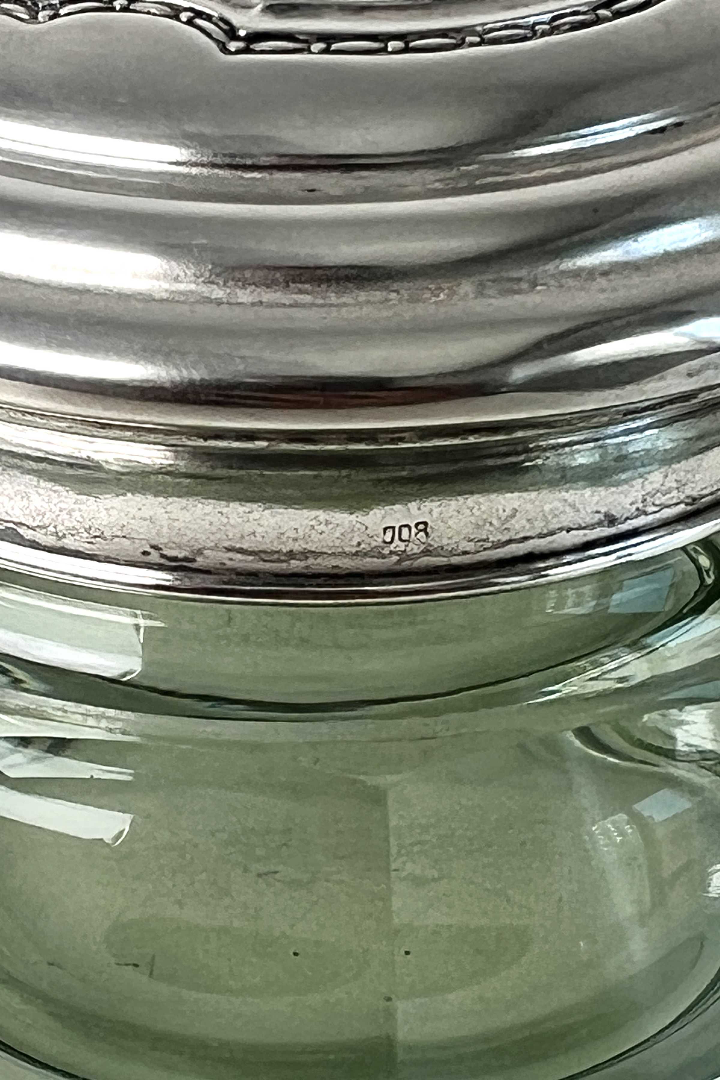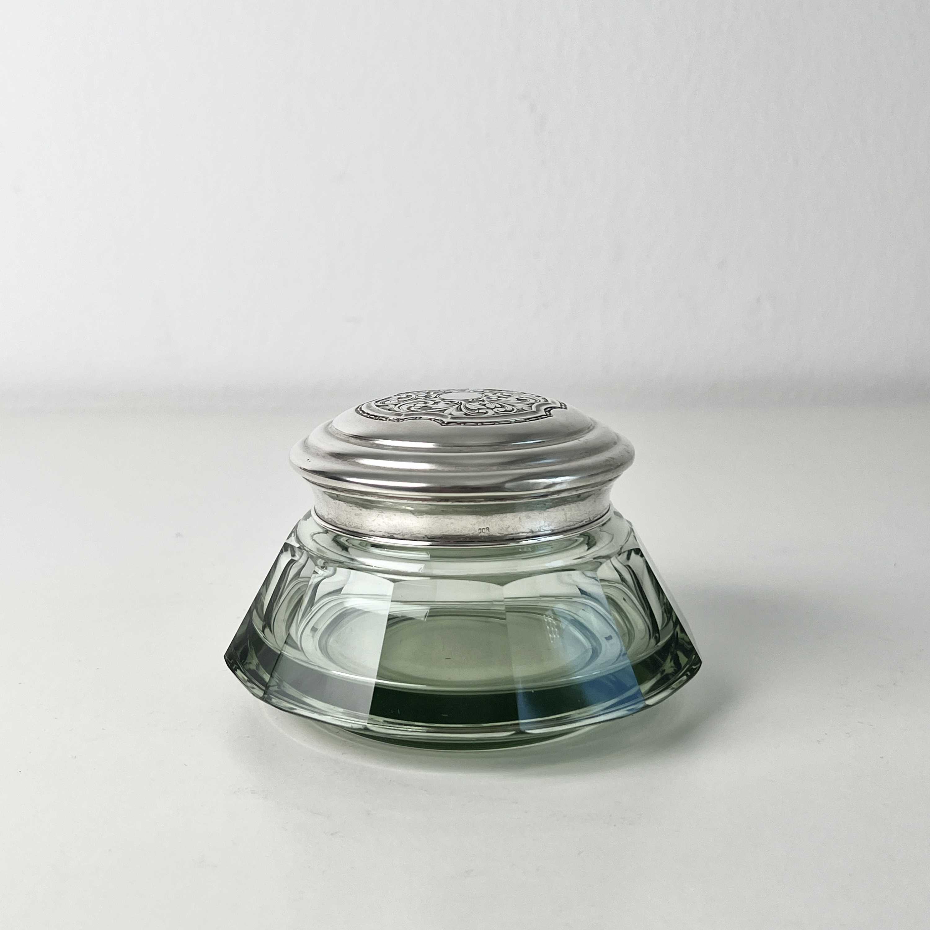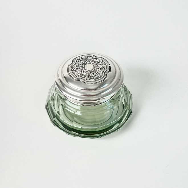 Grünes Kristall-Deckelgefäß mit 800 Silber