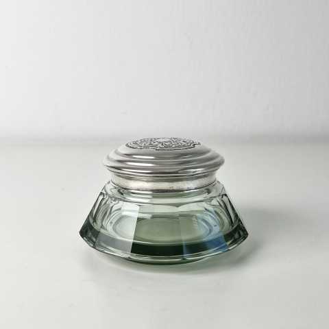 geschliffenes Kristallglas mit 800er Silber-Deckel