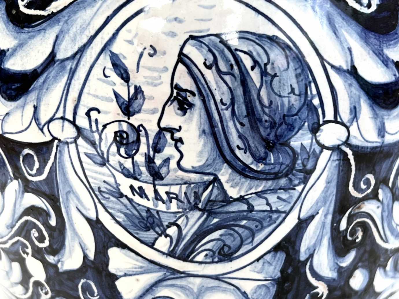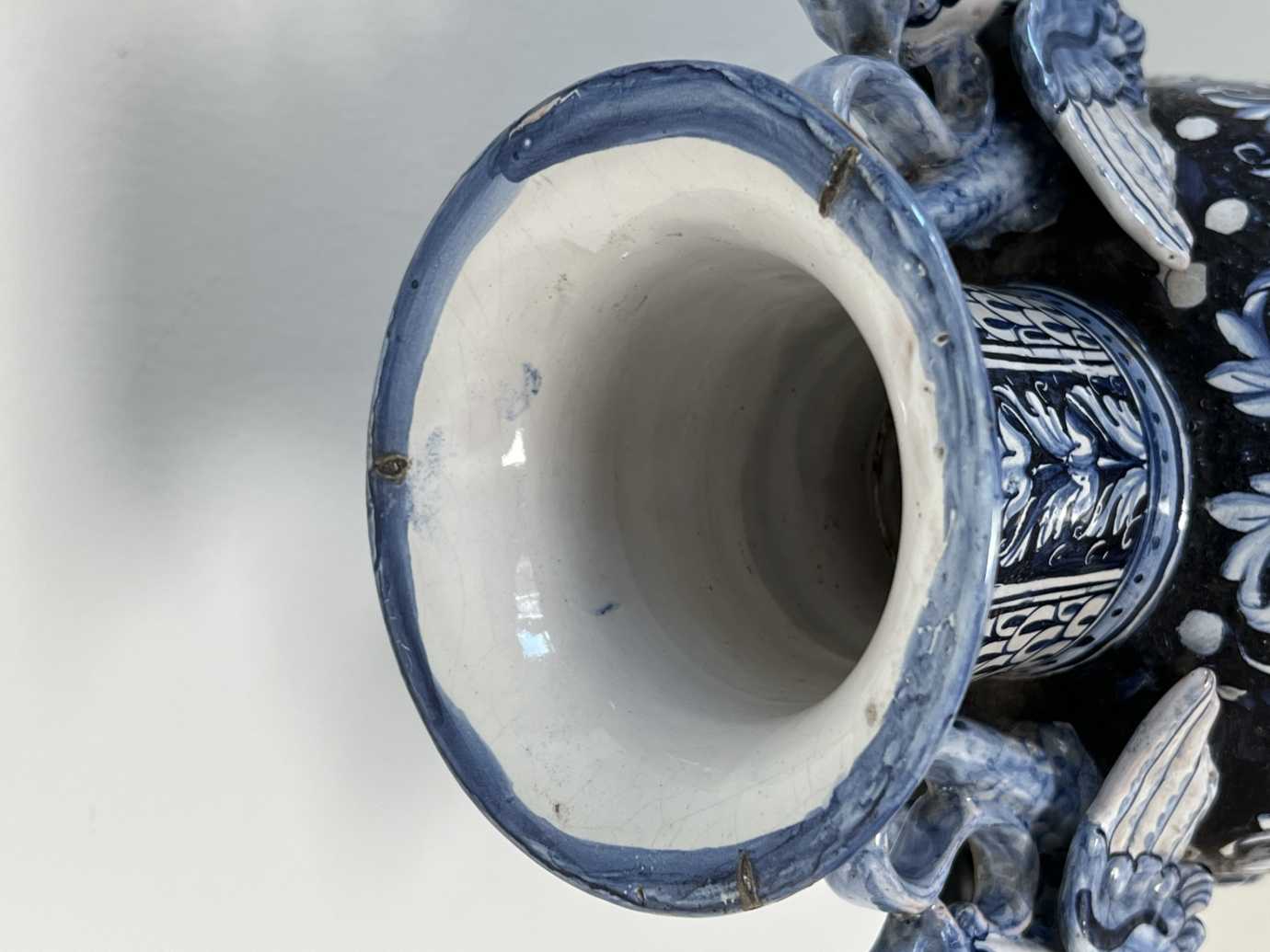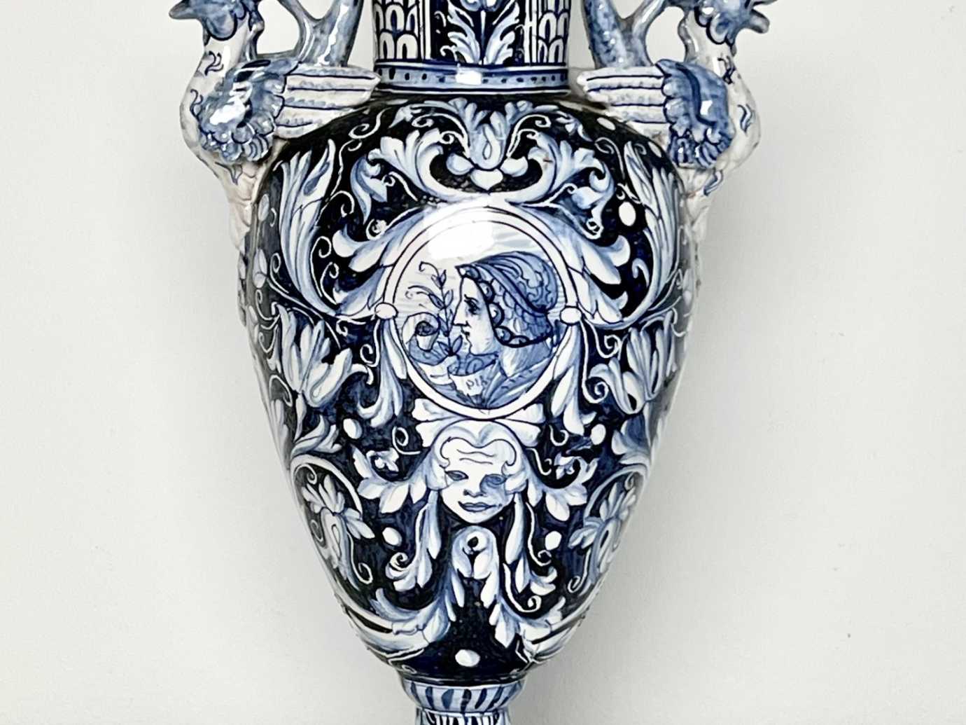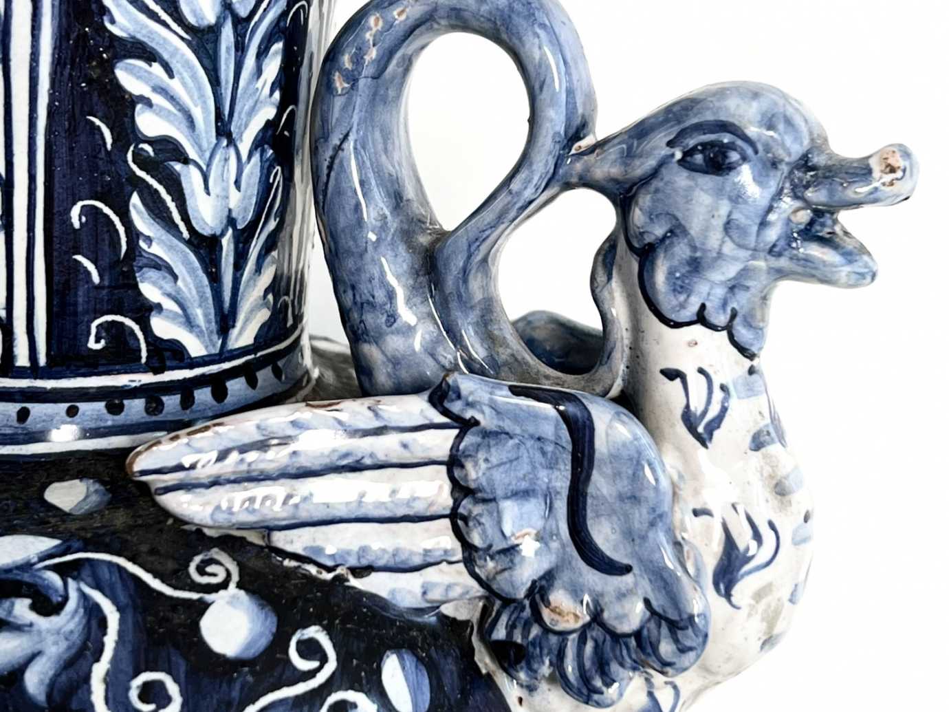 florale Delft-Verzierung, aufgesetzte entenähnliche Fabelwesen, Marie&Pia Portrait