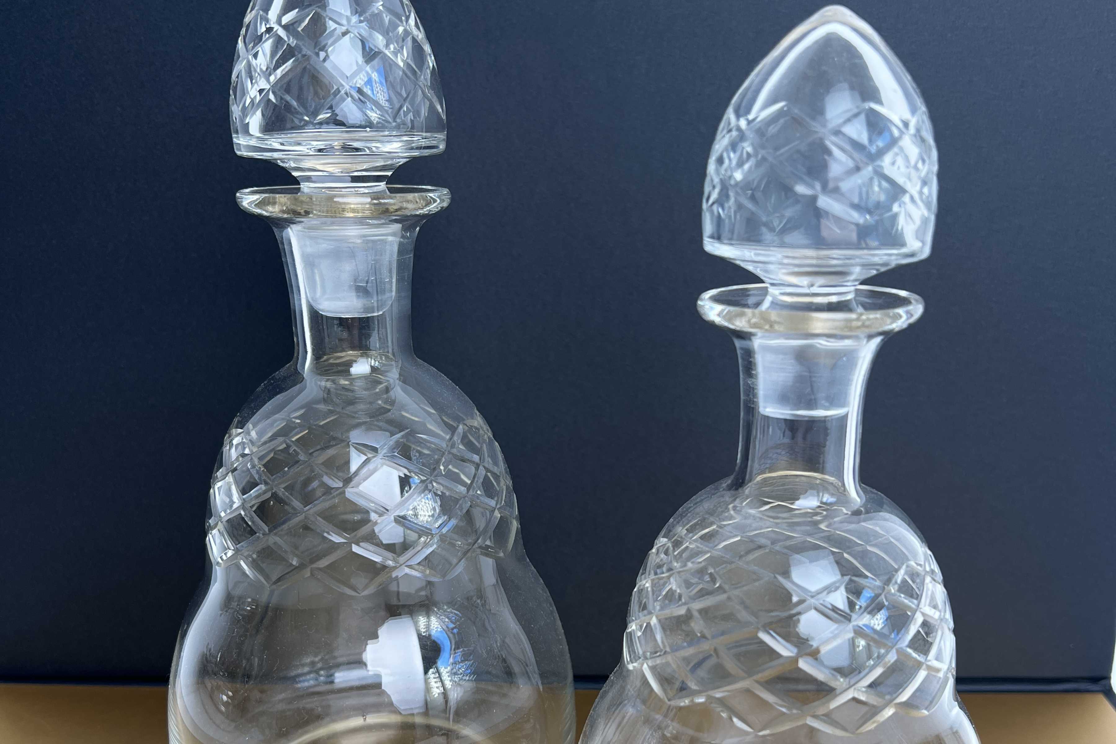 Herrliches Karaffenpaar mit zapfenförmigem Verschluss