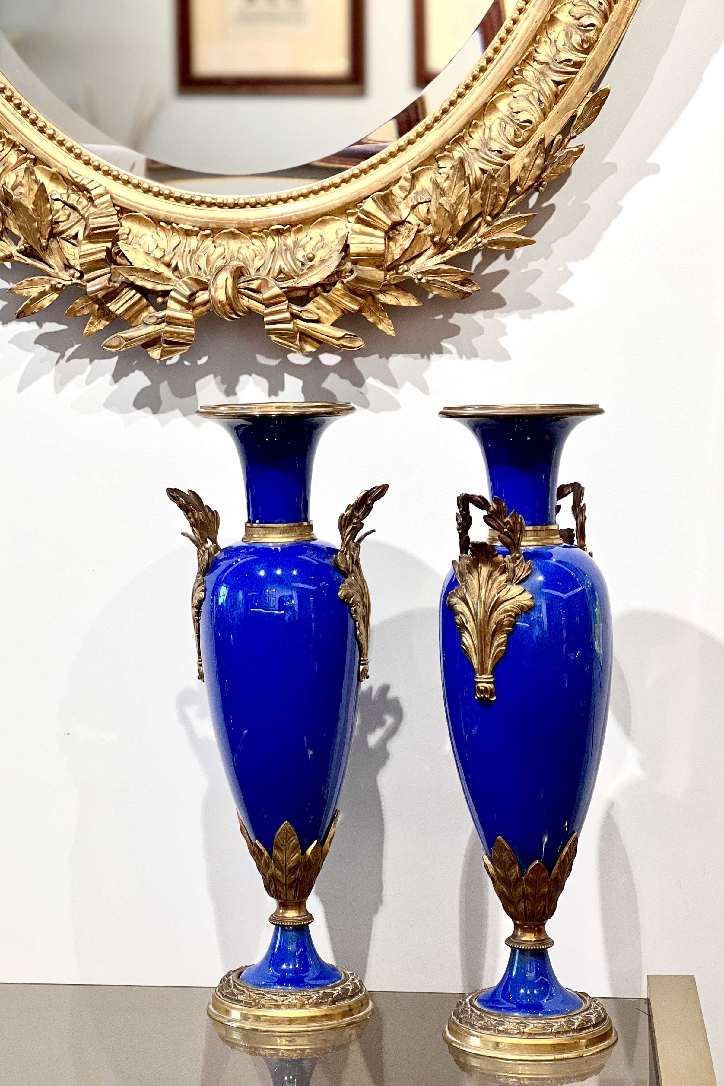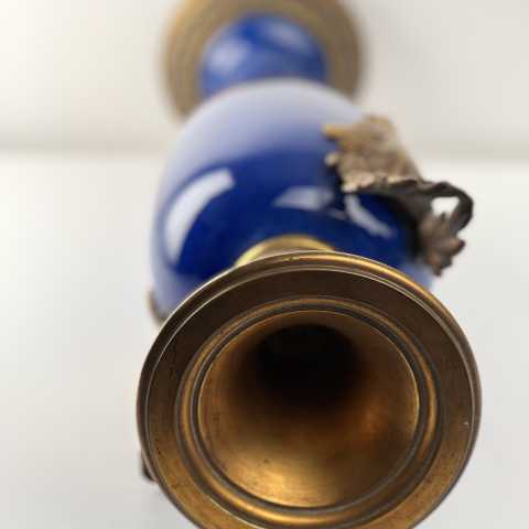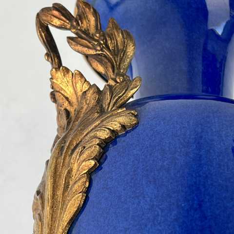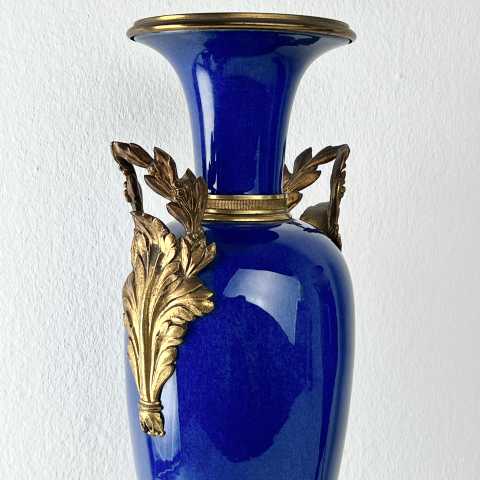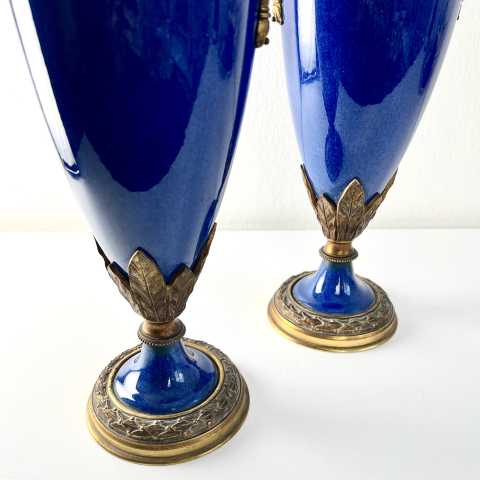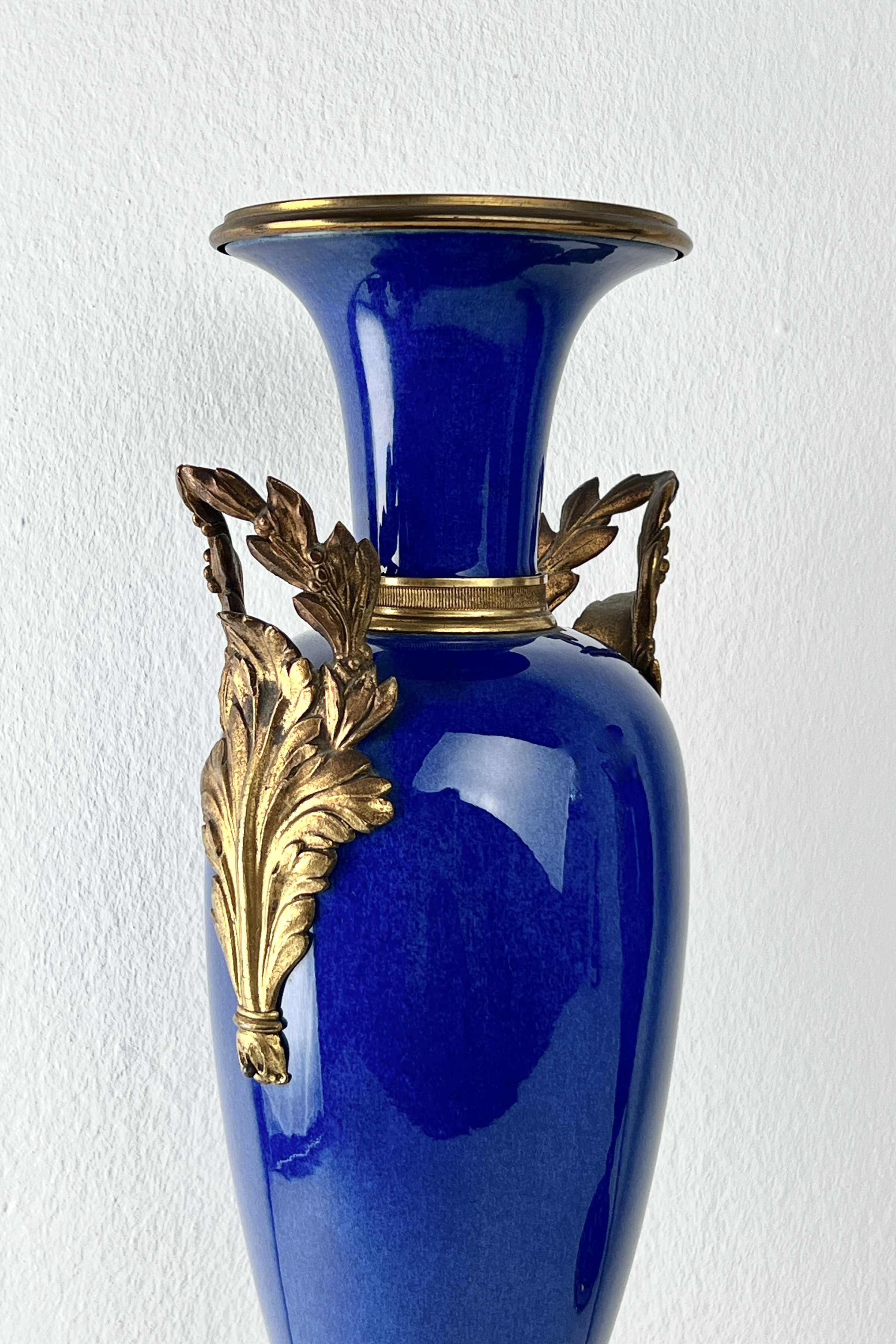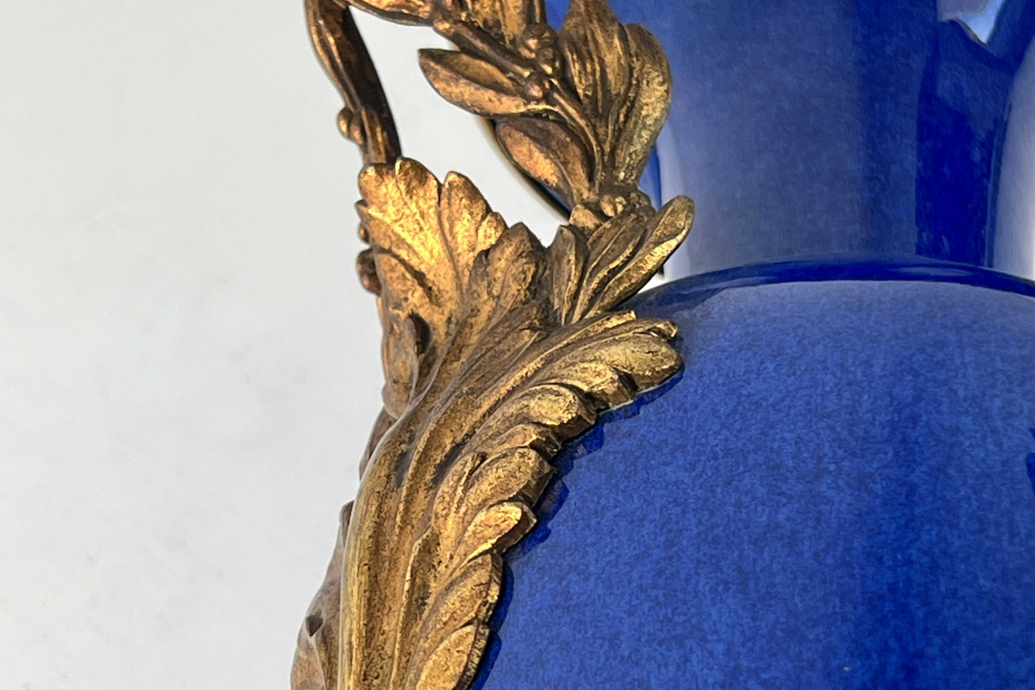 Ziervasen in seltenem, marmoriertem Königsblau, mit Blätter und Lorbeerranken, Ballustradenvasen, ohne Öffnung für Blumen