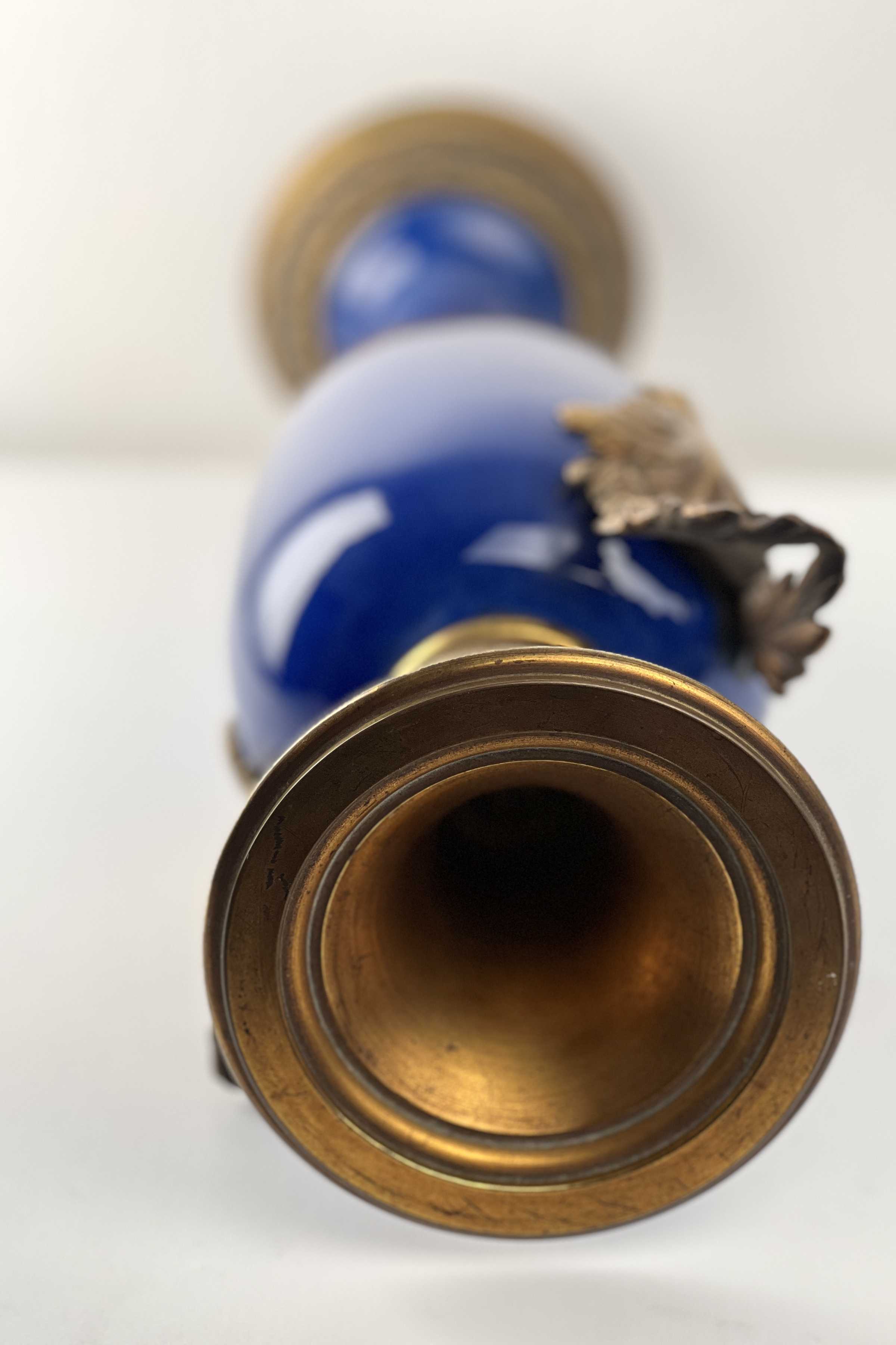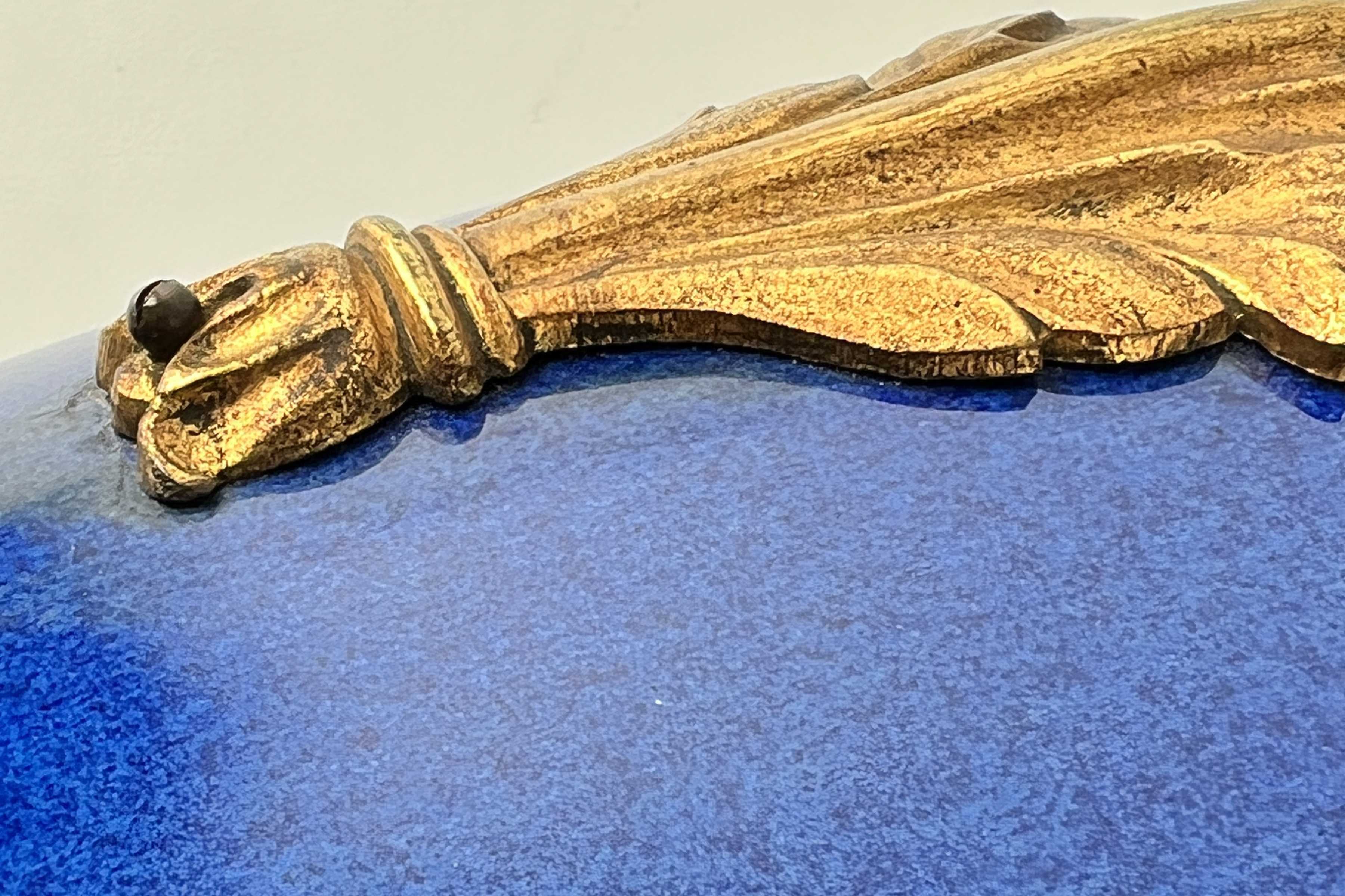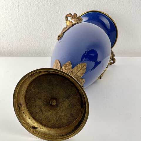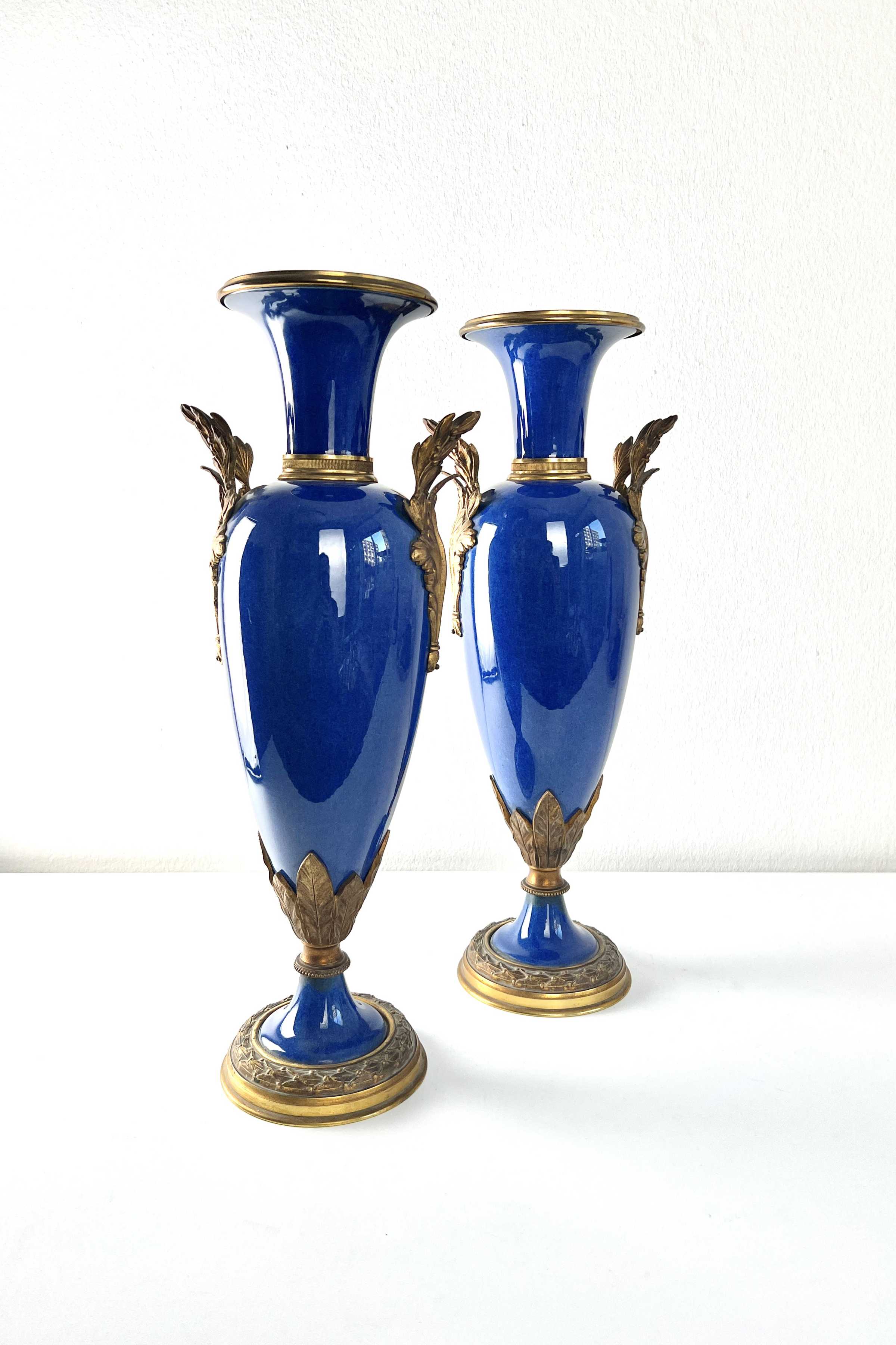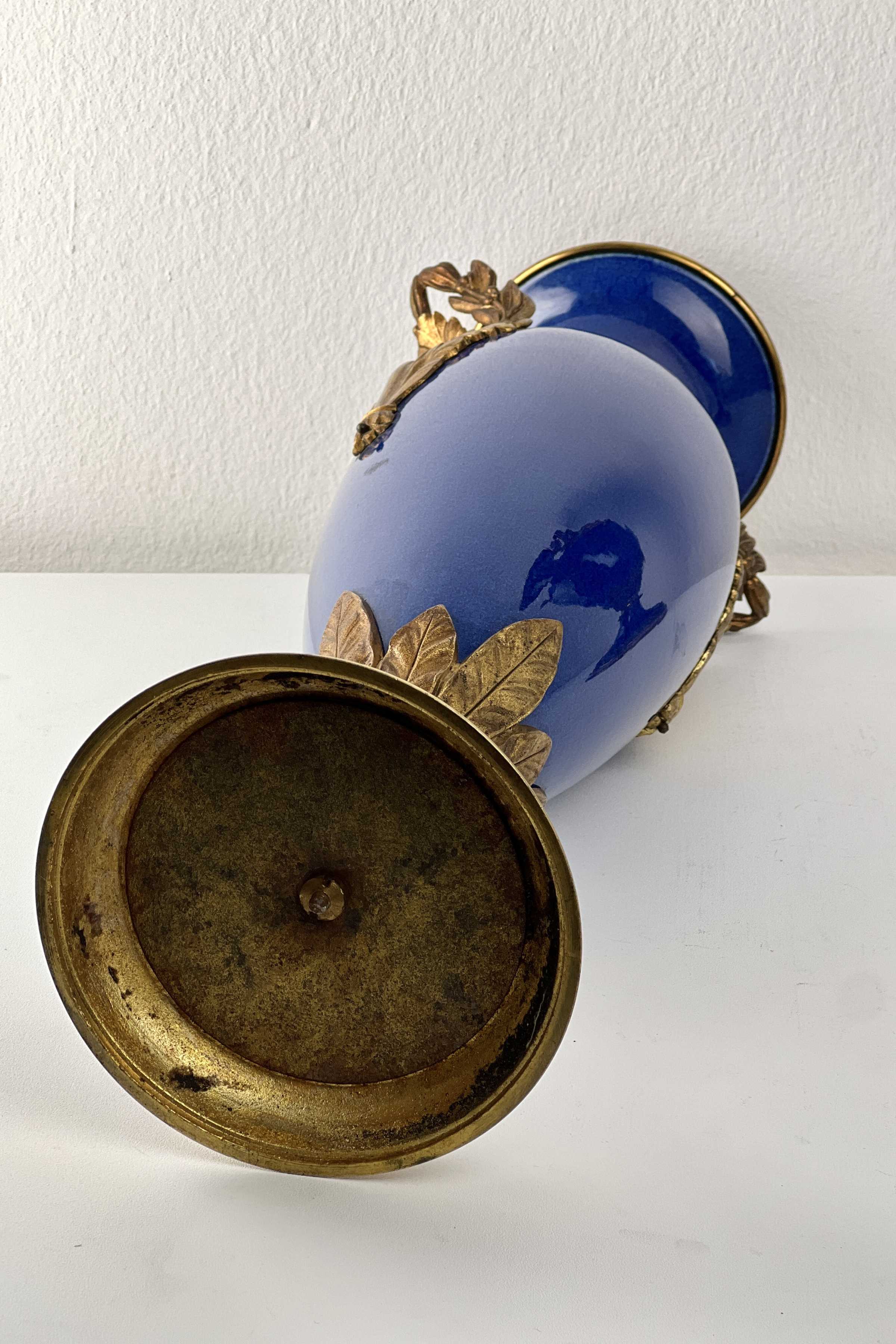 Ziervasen in seltenem, marmoriertem Königsblau, mit Blätter und Lorbeerranken, Ballustradenvasen, ohne Öffnung für Blumen