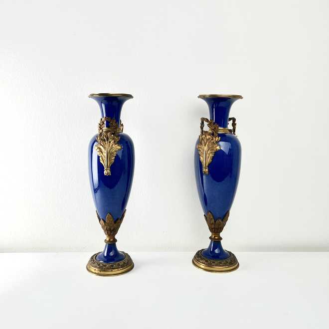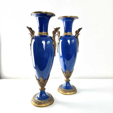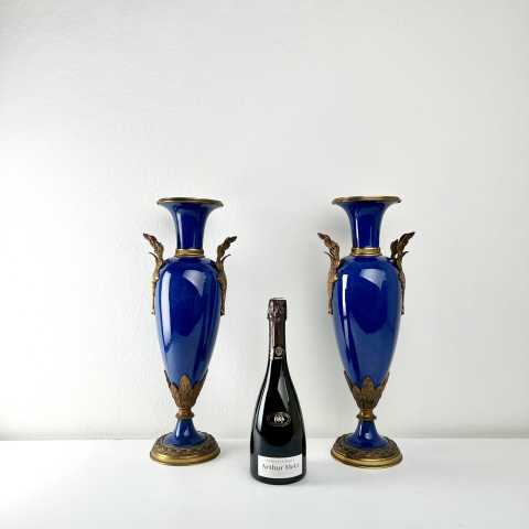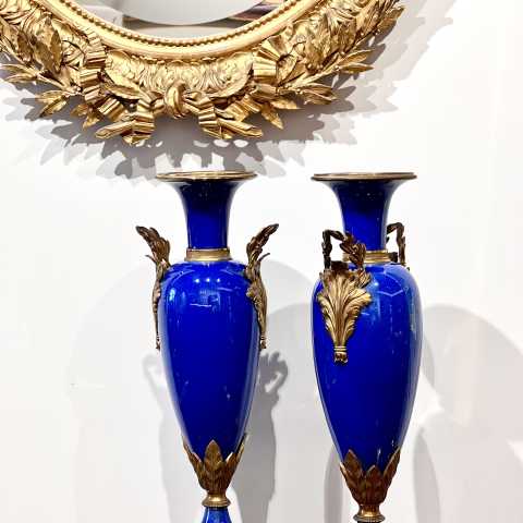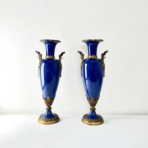Jugendstil, SEVRES Ziervasen-Paar, vergoldet