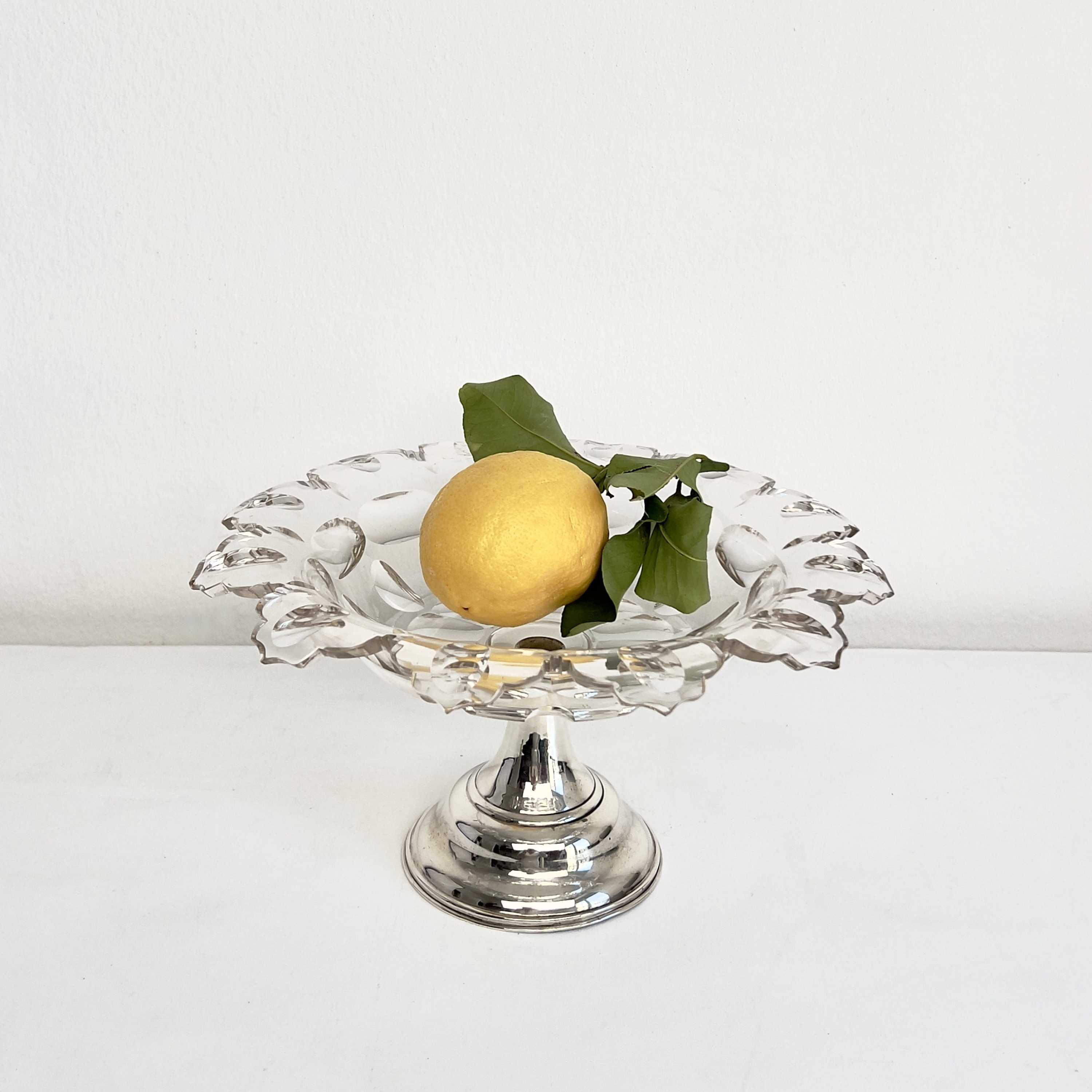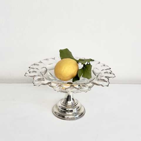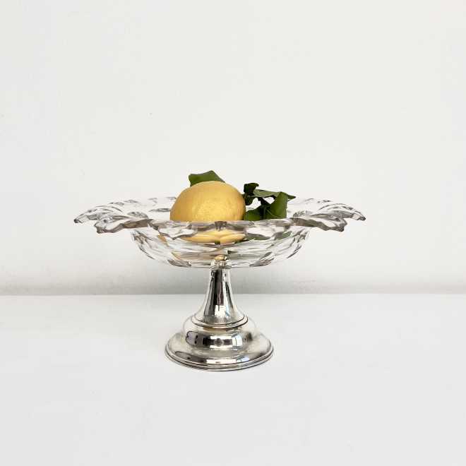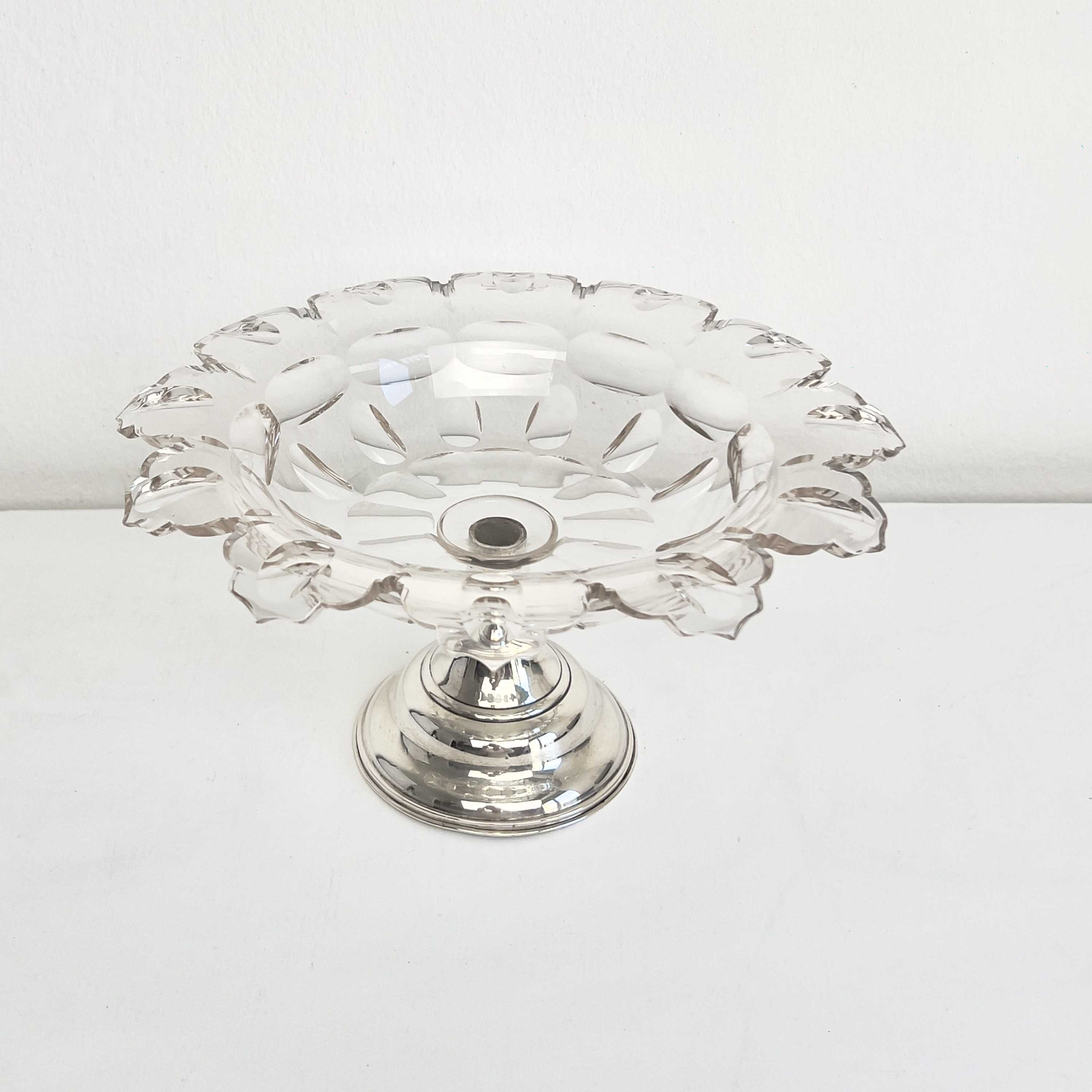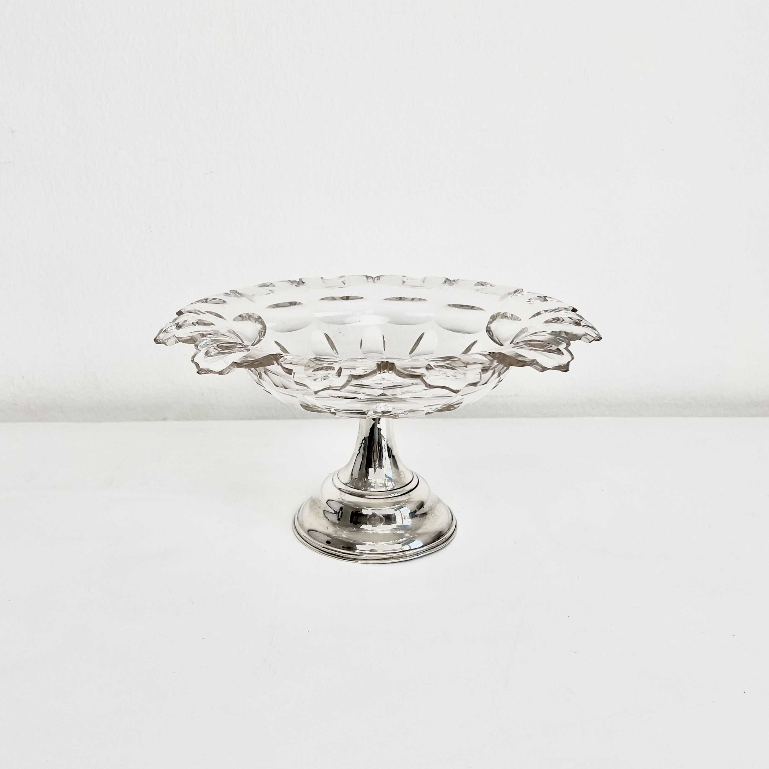 Kristall Aufsatzschale mit Massivsilber-Fuß