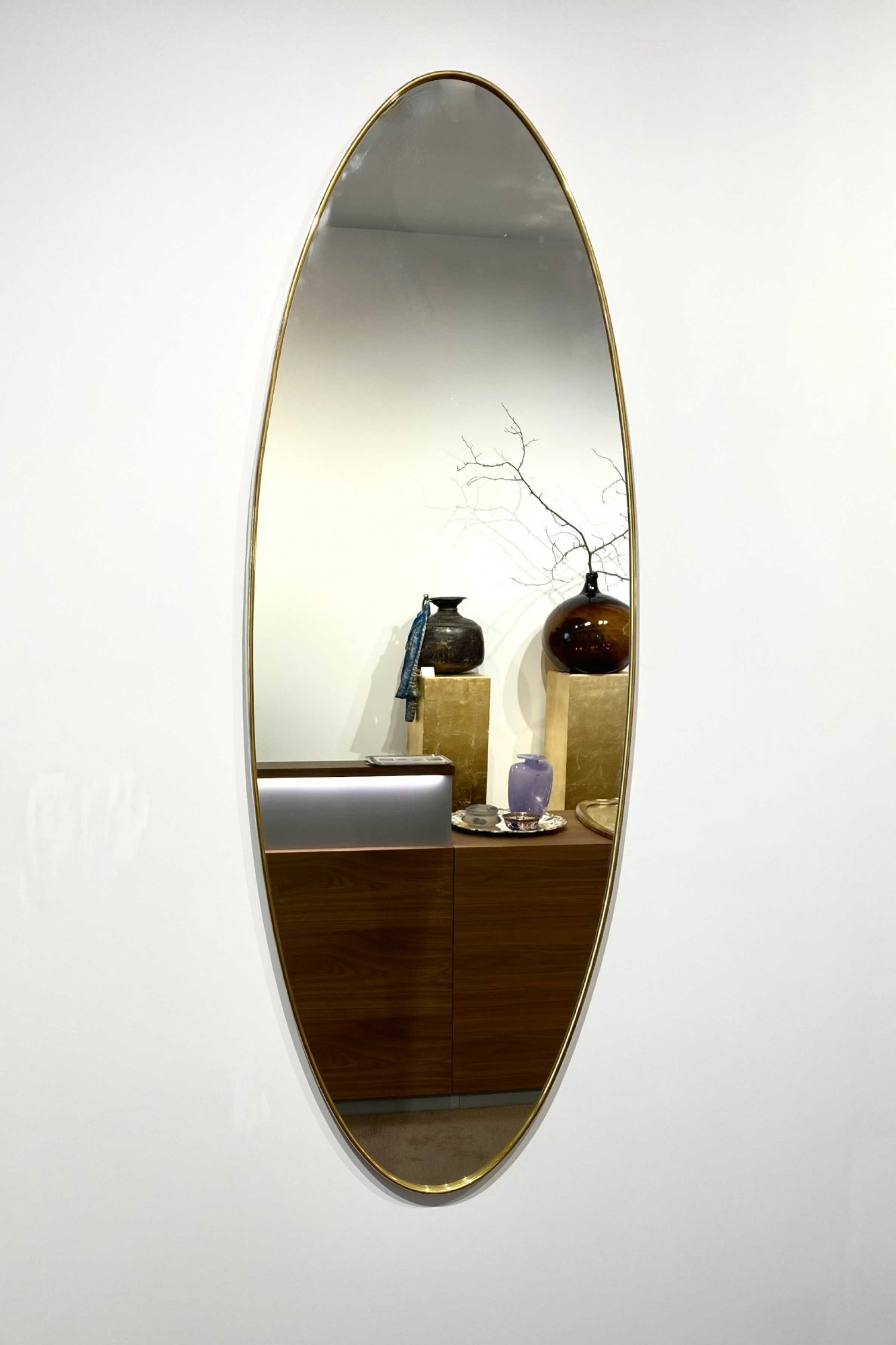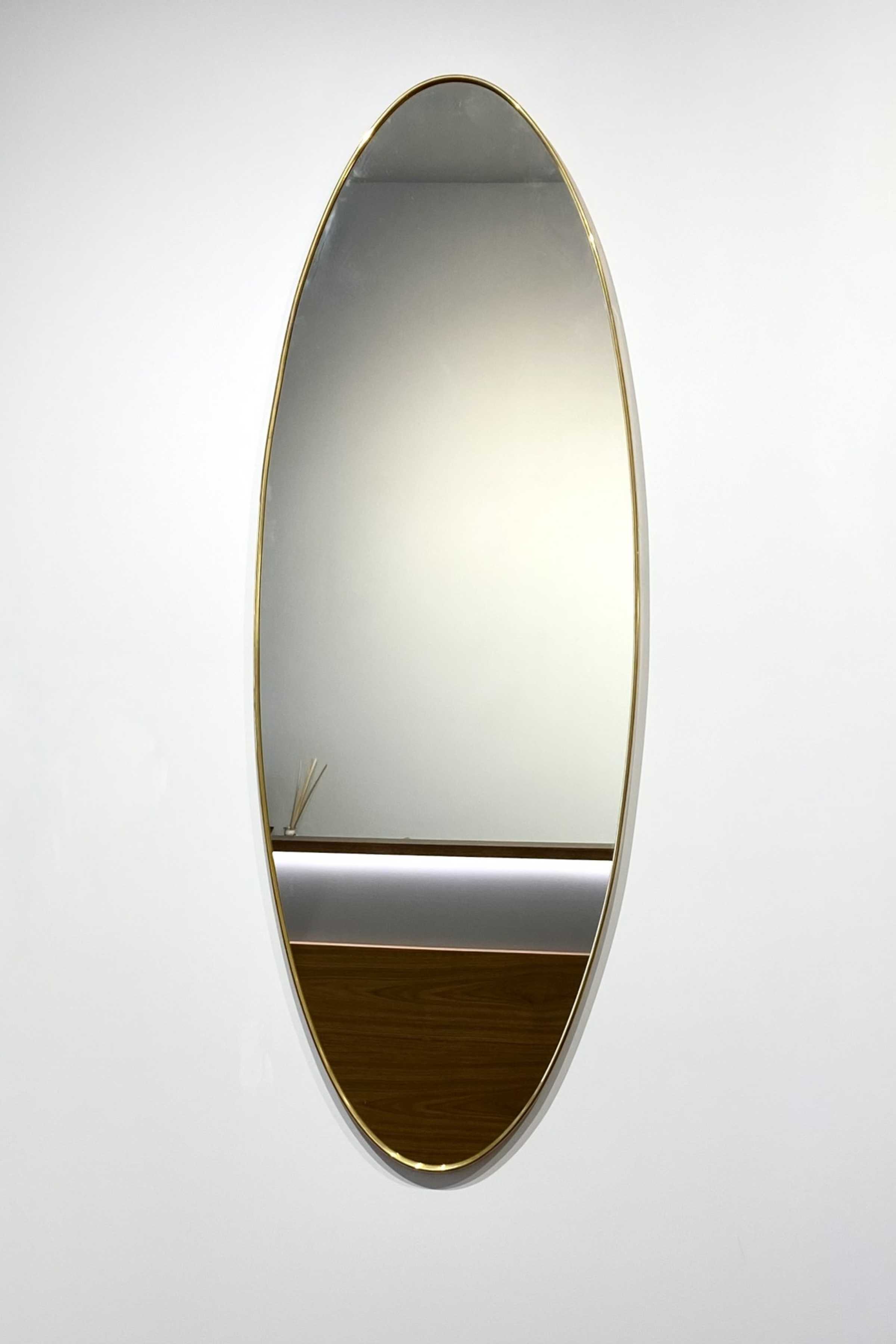 Ovaler Ganzkörper-Spiegel, Messing und Spiegelglas