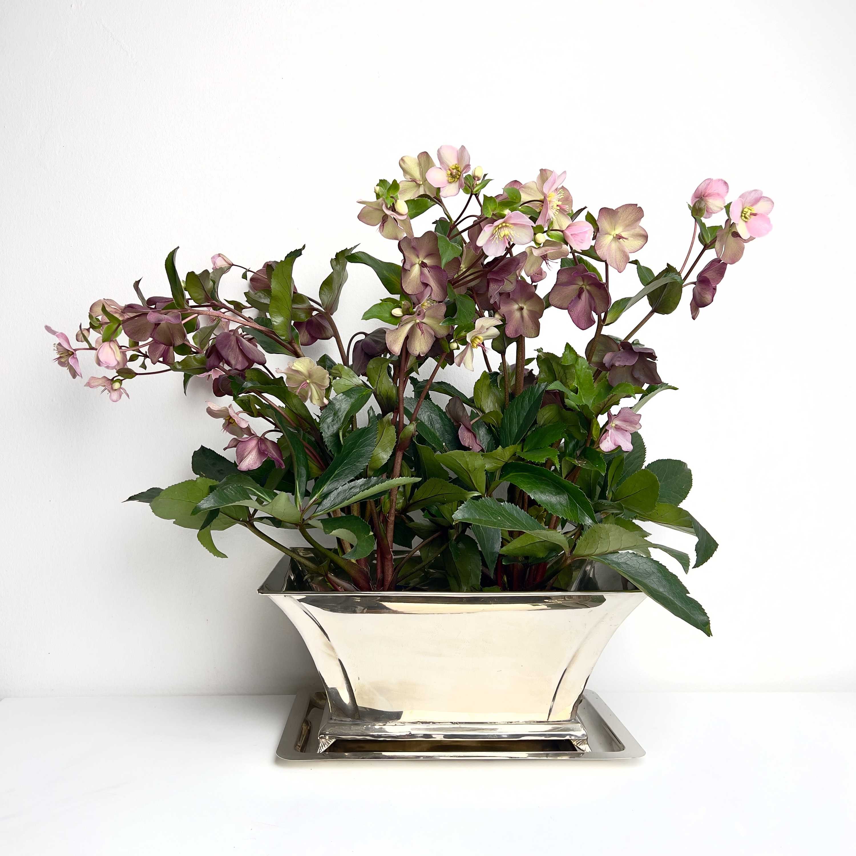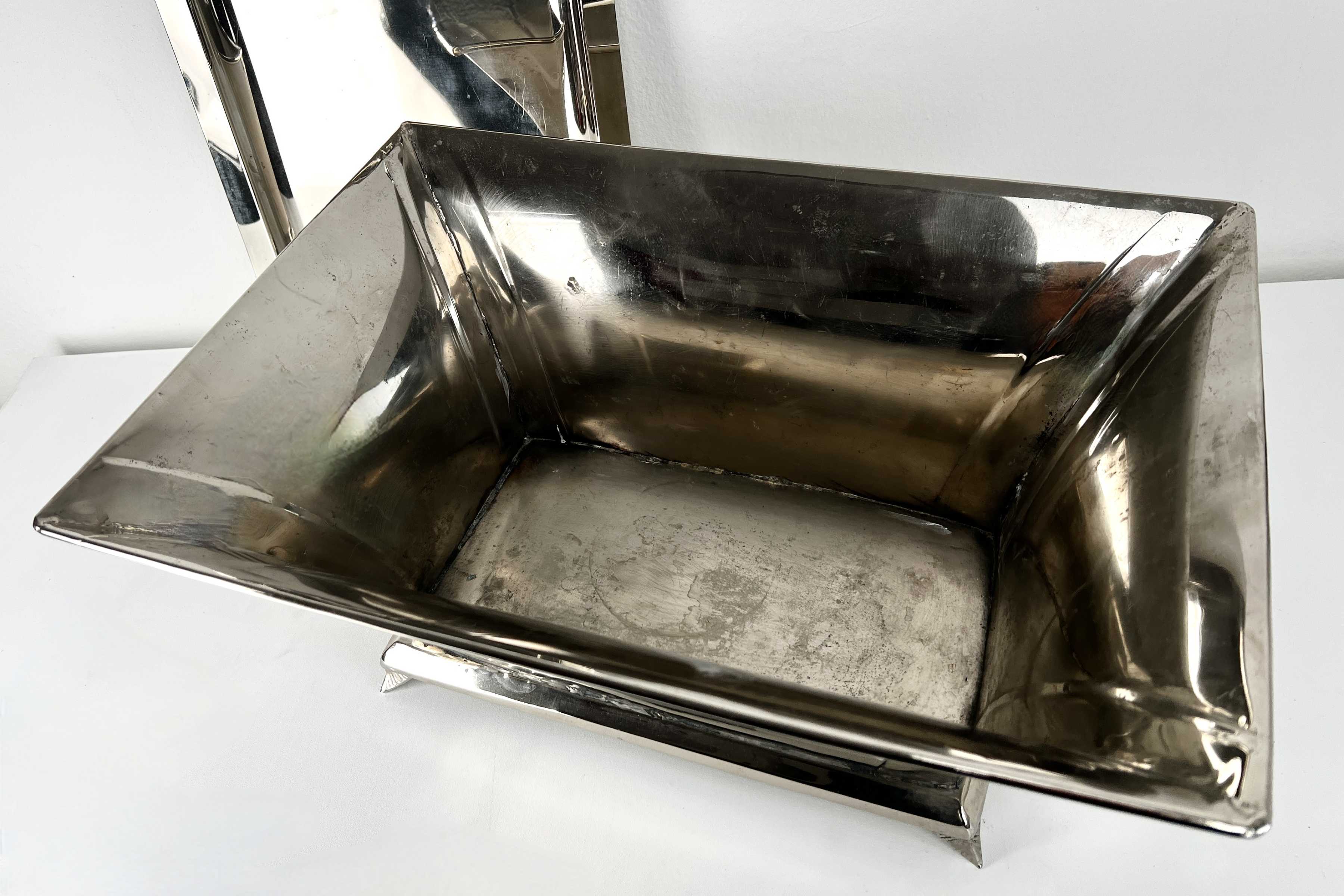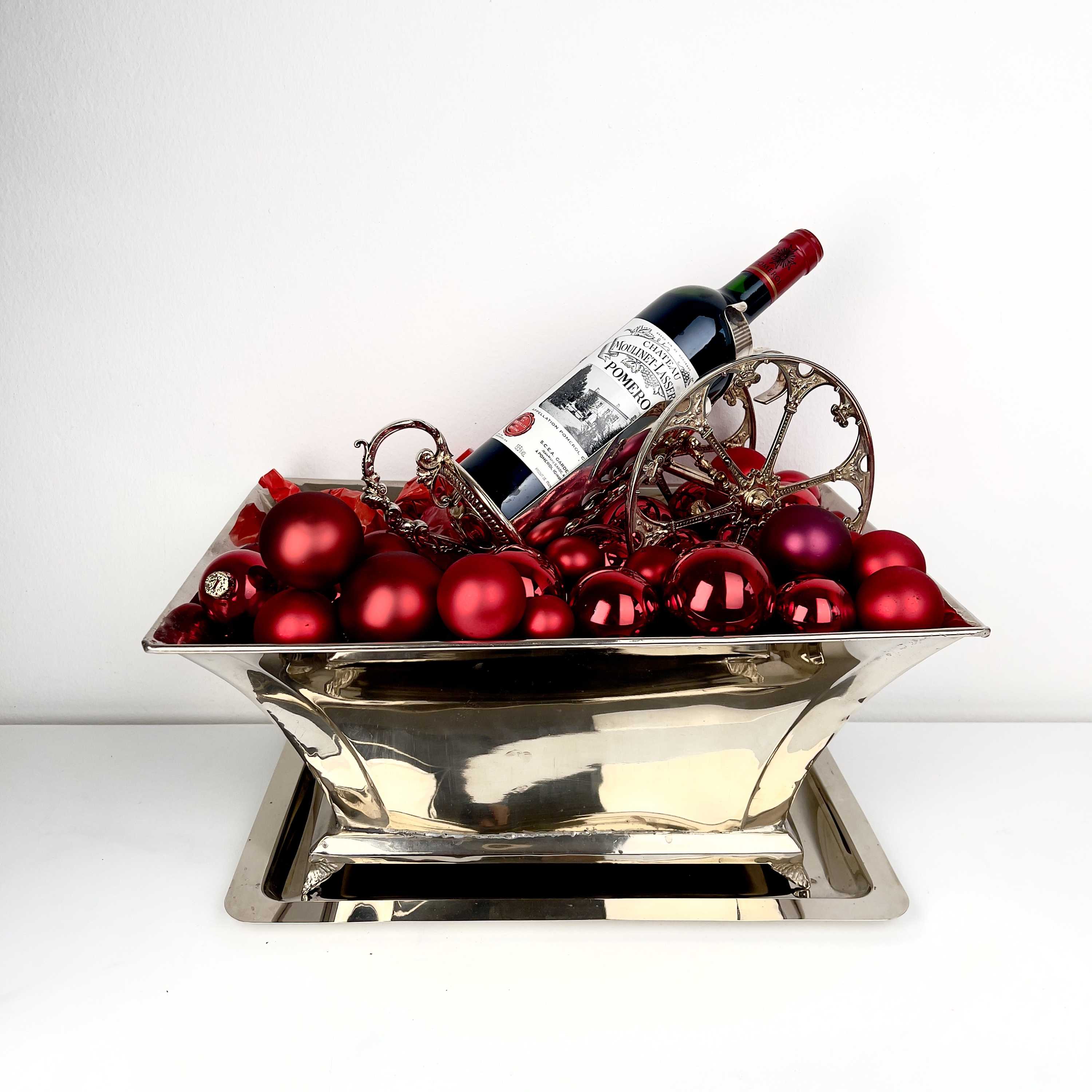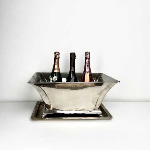 Rechteckiger Kühler mit Tablett für mehrere Flaschen, versilbert