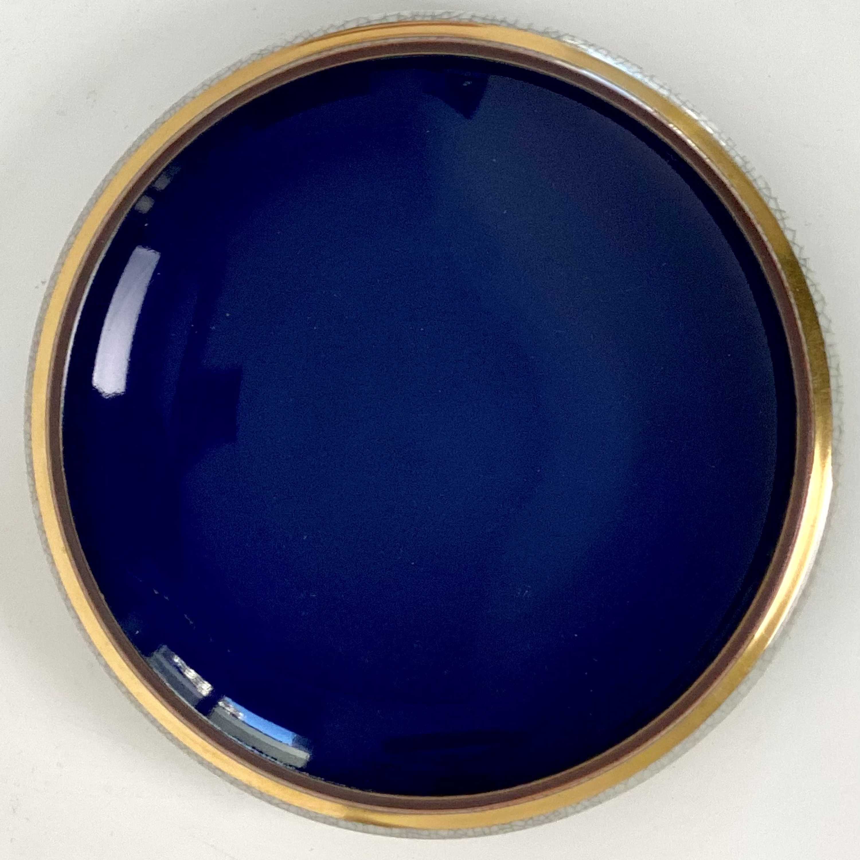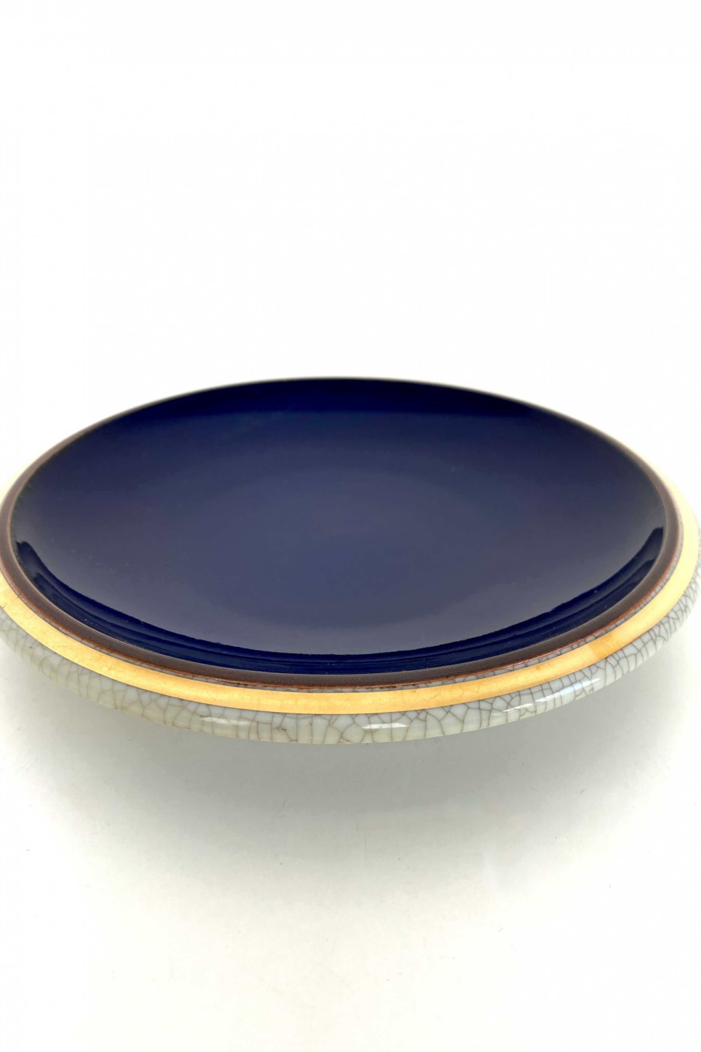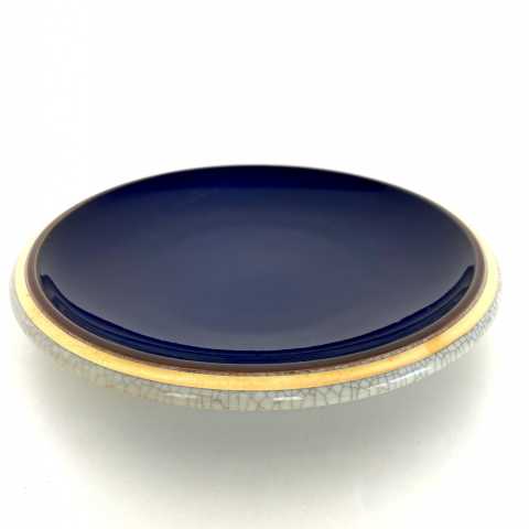 feines graublaues Craquele mit Kobaltblau und 24 Karat Goldrand