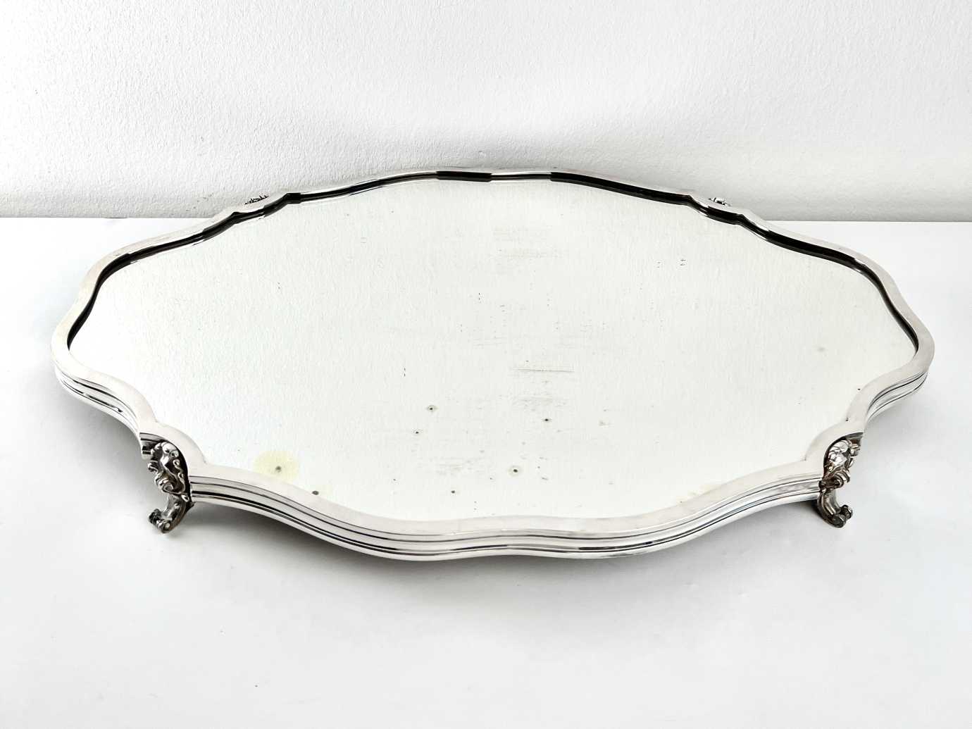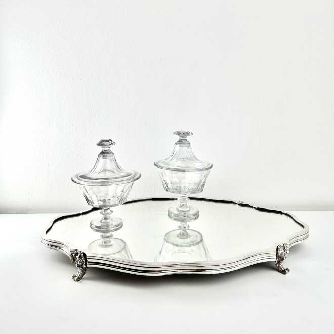 Spiegeltablett mit Holzboden, versilbert