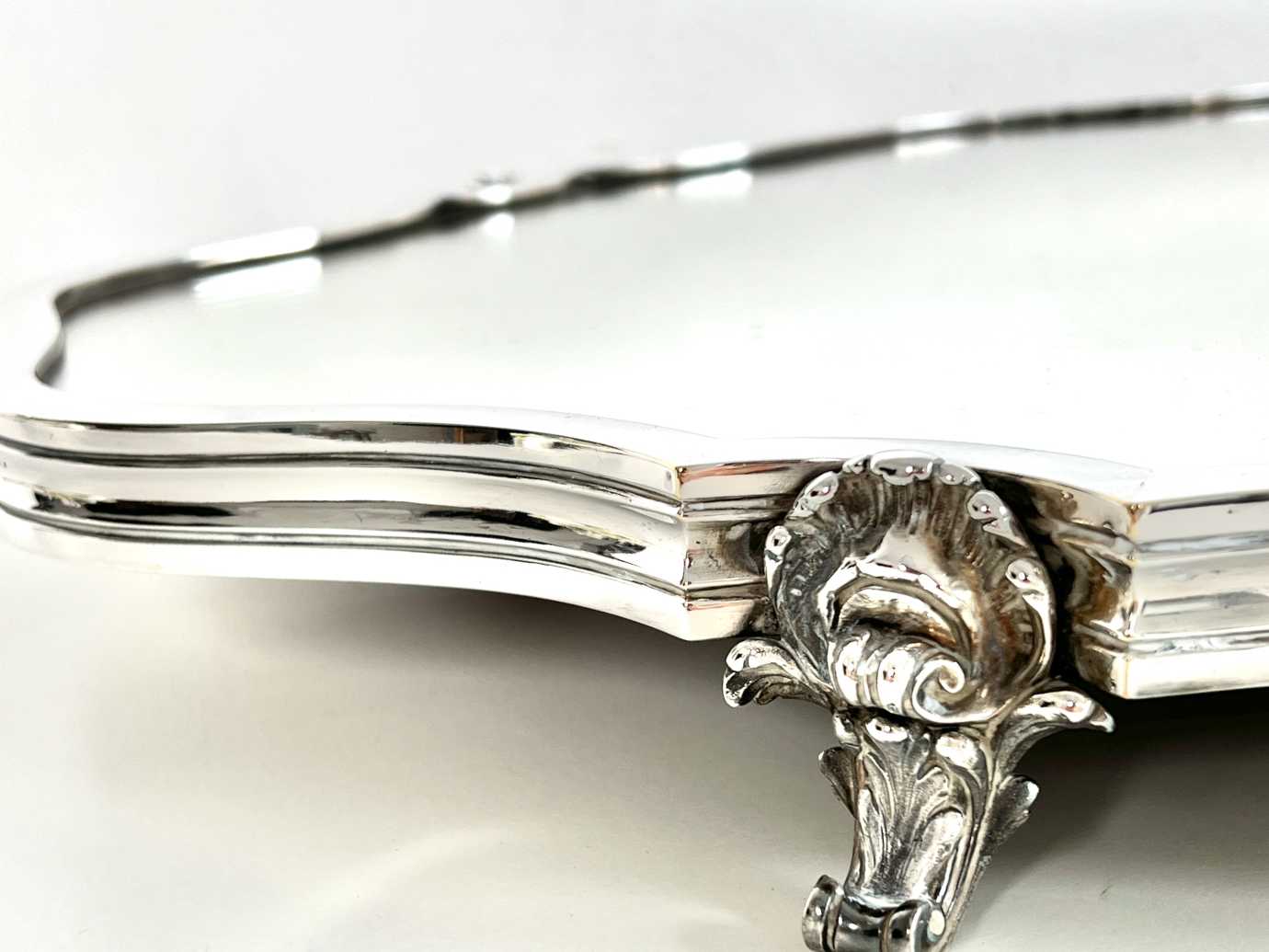 Metall, versilbert, Holzboden, Spiegelglas